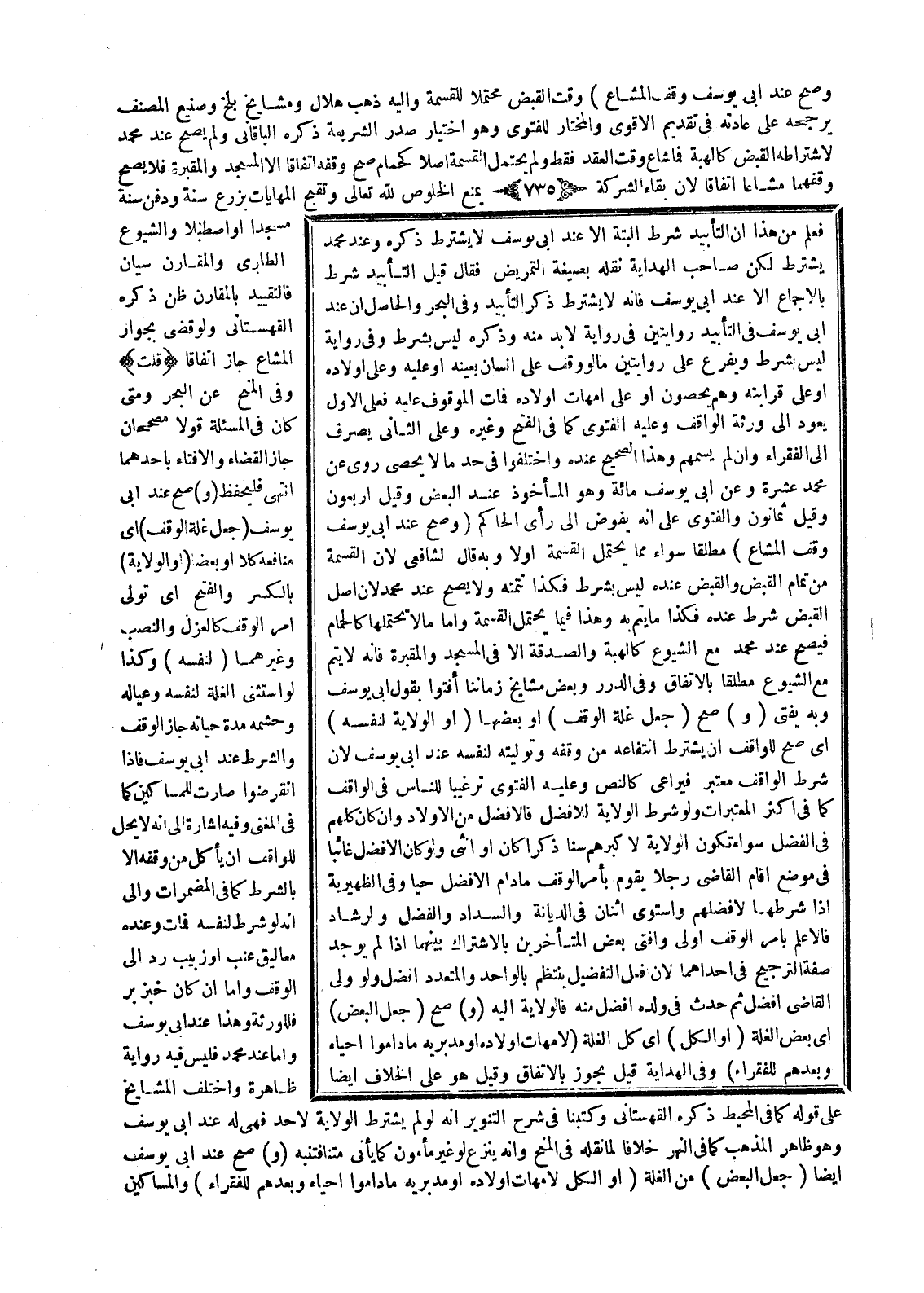 وَفِي رِوَايَةٍ لَيْسَ بِشَرْطٍ وَيُفَرَّعُ عَلَى رِوَايَتَيْنِ مَا لَوْ وَقَفَ عَلَى إنْسَانٍ بِعَيْنِهِ أَوْ عَلَيْهِ وَعَلَى أَوْلَادِهِ أَوْ عَلَى قَرَابَتِهِ وَهُمْ يُحْصَوْنَ أَوْ عَلَى أُمَّهَاتِ أَوْلَادِهِ فَمَاتَ الْمَوْقُوفُ عَلَيْهِ فَعَلَى الْأَوَّلِ يَعُودُ إلَى وَرَثَةِ الْوَاقِفِ وَعَلَيْهِ الْفَتْوَى كَمَا فِي الْفَتْحِ وَغَيْرِهِ وَعَلَى الثَّانِي يُصْرَفُ إلَى الْفُقَرَاءِ وَإِنْ لَمْ يُسَمِّهِمْ وَهَذَا الصَّحِيحُ عِنْدَهُ وَاخْتَلَفُوا فِي حَدِّ مَا لَا يُحْصَى رُوِيَ عَنْ مُحَمَّدٍ عَشَرَةٌ وَعَنْ أَبِي يُوسُفَ مِائَةٌ وَهُوَ الْمَأْخُوذُ عِنْدَ الْبَعْضِ وَقِيلَ أَرْبَعُونَ وَقِيلَ ثَمَانُونَ وَالْفَتْوَى عَلَى أَنَّهُ يُفَوَّضُ إلَى رَأْيِ الْحَاكِمِ.