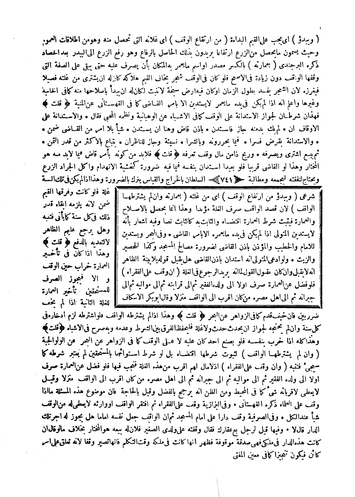 شَرْعِيٍّ (وَيَبْدَأُ مِنْ ارْتِفَاعِ الْوَقْفِ) أَيْ مِنْ غَلَّتِهِ (بِعِمَارَتِهِ وَإِنْ لَمْ يَشْتَرِطْهَا الْوَاقِفُ) لِأَنَّ قَصْدَ الْوَاقِفِ صَرْفُ الْغَلَّةِ مُؤَبَّدًا وَهَذَا إنَّمَا يَحْصُلُ بِالْإِصْلَاحِ وَالْعِمَارَةِ فَيَثْبُتُ شَرْطُ الْعِمَارَةِ اقْتِضَاءً وَالثَّابِتُ بِهِ كَالثَّابِتِ نَصًّا وَفِيهِ إشْعَارٌ بِأَنَّهُ لَا يَسْتَدِينُ الْمُتَوَلِّي إذَا لَمْ يَكُنْ فِي يَدِهِ مَا يُعَمِّرُهُ إلَّا بِأَمْرِ الْقَاضِي.