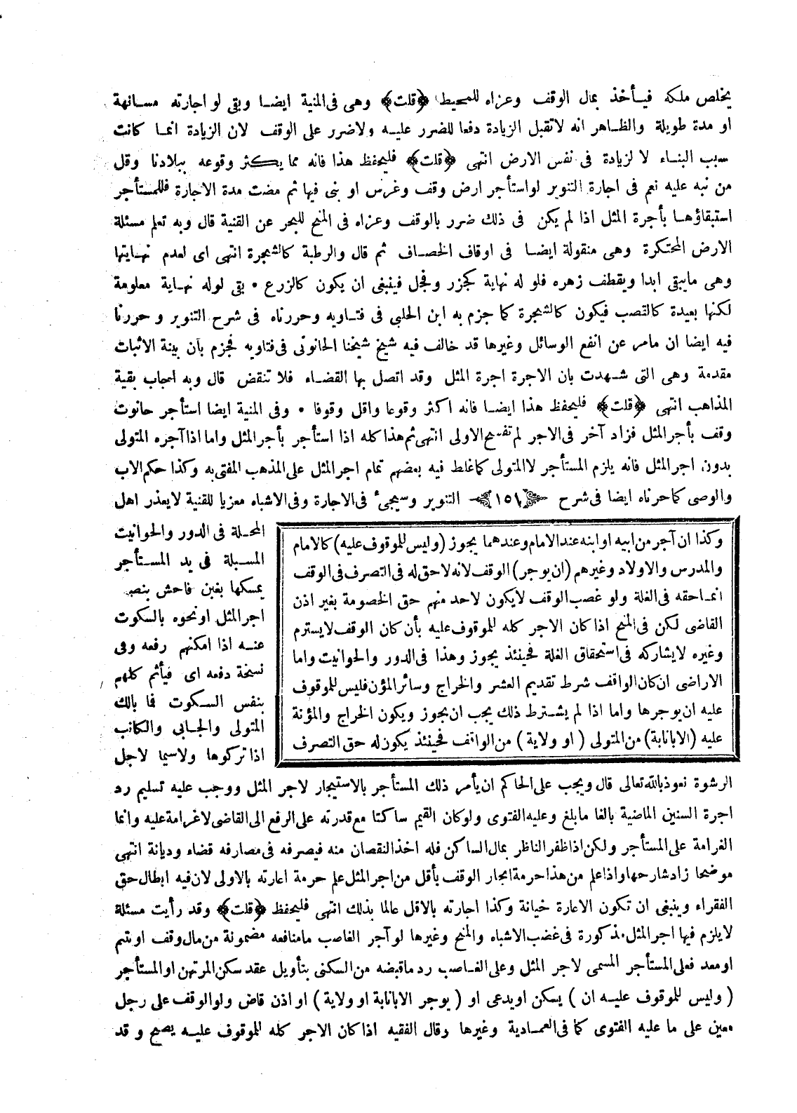 (وَلَيْسَ لِلْمَوْقُوفِ عَلَيْهِ) كَالْإِمَامِ وَالْمُدَرِّسِ وَالْأَوْلَادِ وَغَيْرِهِمْ (أَنْ يُؤَجِّرَ) الْوَقْفَ لِأَنَّهُ لَا حَقَّ لَهُ فِي التَّصَرُّفِ فِي الْوَقْفِ إنَّمَا حَقُّهُ فِي الْغَلَّةِ وَلَوْ غُصِبَ الْوَقْفُ لَا يَكُونُ لِأَحَدٍ مِنْهُمْ حَقُّ الْخُصُومَةِ بِغَيْرِ إذْنِ الْقَاضِي لَكِنْ فِي الْمِنَحِ إذَا كَانَ الْأَجْرُ كُلُّهُ لِلْمَوْقُوفِ عَلَيْهِ بِأَنْ كَانَ الْوَقْفُ لَا يَسْتَرِمُّ وَغَيْرُهُ لَا يُشَارِكُهُ فِي اسْتِحْقَاقِ الْغَلَّةِ فَحِينَئِذٍ يَجُوزُ وَهَذَا فِي الدُّورِ وَالْحَوَانِيتِ وَأَمَّا الْأَرَاضِي إنْ كَانَ الْوَاقِفُ شَرَطَ تَقْدِيمَ الْعُشْرِ وَالْخَرَاجِ وَسَائِرِ الْمُؤَنِ فَلَيْسَ لِلْمَوْقُوفِ عَلَيْهِ أَنْ يُؤَجِّرَهَا وَأَمَّا إذَا لَمْ يَشْتَرِطْ ذَلِكَ يَجِبُ أَنْ يَجُوزَ وَيَكُونُ الْخَرَاجُ وَالْمُؤْنَةُ عَلَيْهِ (إلَّا بِإِنَابَةٍ) مِنْ الْمُتَوَلِّي (أَوْ وِلَايَةٍ) مِنْ الْوَاقِفِ فَحِينَئِذٍ يَكُونُ لَهُ حَقُّ التَّصَرُّفِ
