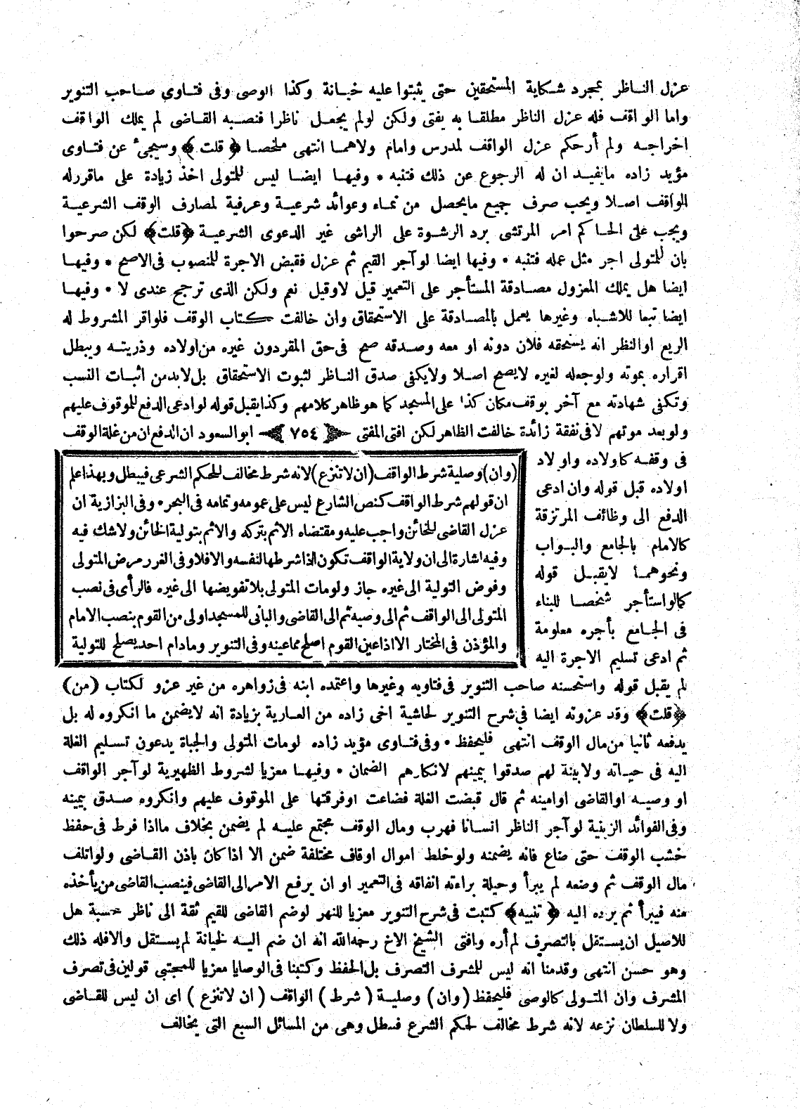 (وَإِنْ) وَصَلْيَةٌ، شَرَطَ الْوَاقِفُ (أَنْ لَا تُنْزَعَ) لِأَنَّهُ شَرْطٌ مُخَالِفٌ لِلْحُكْمِ الشَّرْعِيِّ فَيَبْطُلُ وَبِهَذَا عُلِمَ أَنَّ قَوْلَهُمْ شَرْطُ الْوَاقِفِ كَنَصِّ الشَّارِعِ لَيْسَ عَلَى عُمُومِهِ وَتَمَامُهُ فِي الْبَحْرِ.
