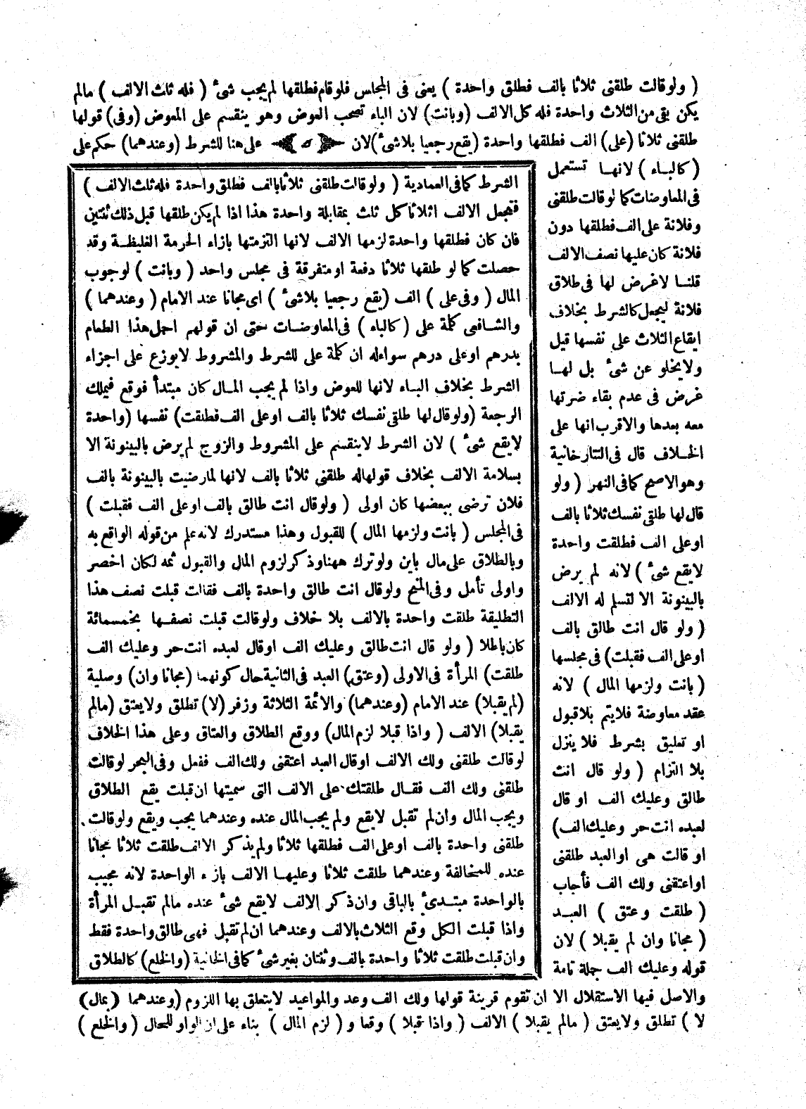 (وَلَوْ قَالَتْ طَلِّقْنِي ثَلَاثًا بِأَلْفٍ فَطَلَّقَ وَاحِدَةً فَلَهُ ثُلُثُ الْأَلْفِ) فَتُجْعَلُ الْأَلْفُ ثَلَاثًا كُلُّ ثُلُثٍ بِمُقَابَلَةِ وَاحِدَةٍ، هَذَا إذَا لَمْ يَكُنْ طَلَّقَهَا قَبْلَ ذَلِكَ ثِنْتَيْنِ فَإِنْ كَانَ طَلَّقَهَا وَاحِدَةً لَزِمَهَا الْأَلْفُ لِأَنَّهَا الْتَزَمَتْهَا بِإِزَاءِ الْحُرْمَةِ الْغَلِيظَةِ وَقَدْ حَصَلَتْ كَمَا لَوْ طَلَّقَهَا ثَلَاثًا دَفْعَةً أَوْ مُتَفَرِّقَةً فِي مَجْلِسٍ وَاحِدٍ (وَبَانَتْ) لِوُجُوبِ الْمَالِ (وَفِي عَلَى) أَلْفٍ (يَقَعُ رَجْعِيًّا بِلَا شَيْءٍ) أَيْ مَجَّانًا عِنْدَ الْإِمَامِ (وَعِنْدَهُمَا) وَالشَّافِعِيِّ كَلِمَةُ عَلَى (كَالْبَاءِ) فِي الْمُعَاوَضَاتِ حَتَّى أَنَّ قَوْلَهُمْ احْمِلْ هَذَا الطَّعَامَ بِدِرْهَمٍ أَوْ عَلَى دِرْهَمٍ سَوَاءٌ، لَهُ كَلِمَةُ عَلَى لِلشَّرْطِ وَالْمَشْرُوطُ لَا يُوَزَّعُ عَلَى أَجْزَاءِ الشَّرْطِ بِخِلَافِ الْبَاءِ لِأَنَّهَا لِلْعِوَضِ وَإِذَا لَمْ يَجِبْ الْمَالُ كَانَ مُبْتَدَأً فَوَقَعَ فَيَمْلِكُ الرَّجْعَةَ.