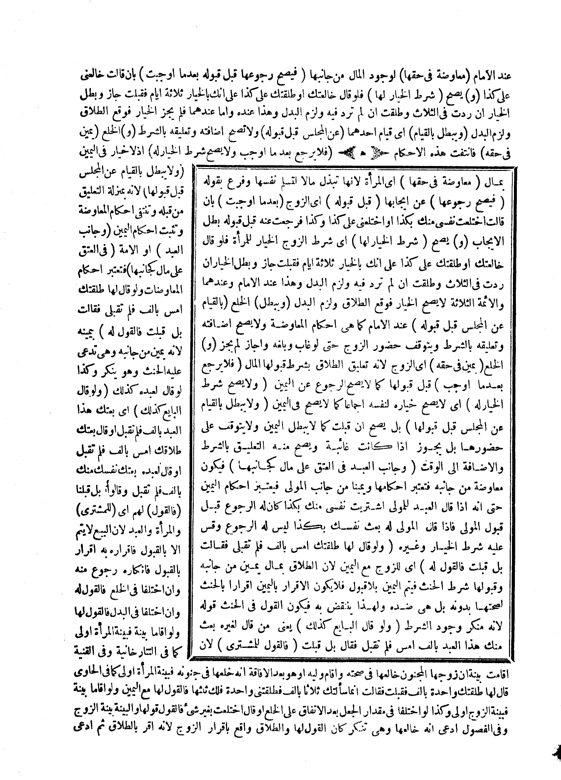 (وَيَبْطُلُ) الْخُلْعُ (بِالْقِيَامِ عَنْ الْمَجْلِسِ قَبْلَ قَبُولِهِ) عِنْدَ الْإِمَامِ كَمَا هِيَ أَحْكَامُ الْمُعَاوَضَةِ وَلَا يَصِحُّ إضَافَتُهُ وَتَعْلِيقُهُ بِالشَّرْطِ وَيَتَوَقَّفُ عَلَى حُضُورِ الزَّوْجِ حَتَّى لَوْ غَابَ وَبَلَغَهُ وَأَجَازَ لَمْ يَجُزْ.