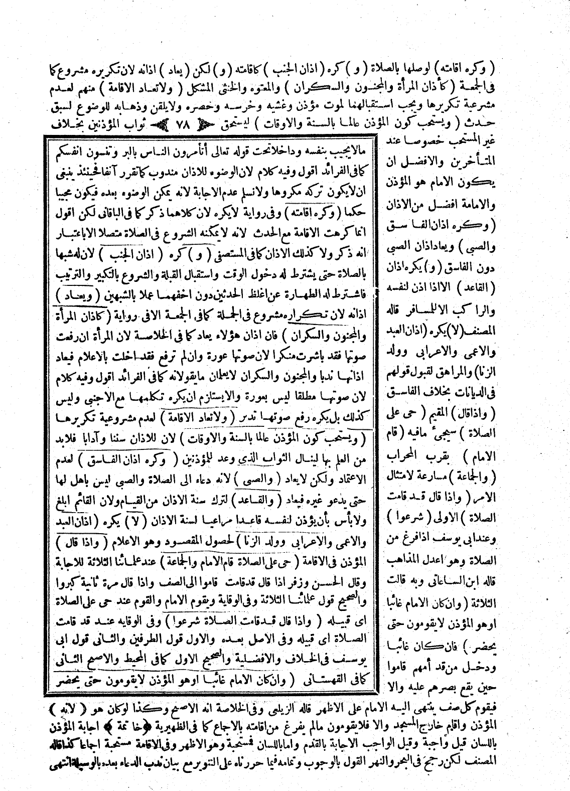 وَفِي الْوِقَايَةِ عِنْدَ قَدْ قَامَتْ الصَّلَاةُ أَيْ قُبَيْلَهُ.