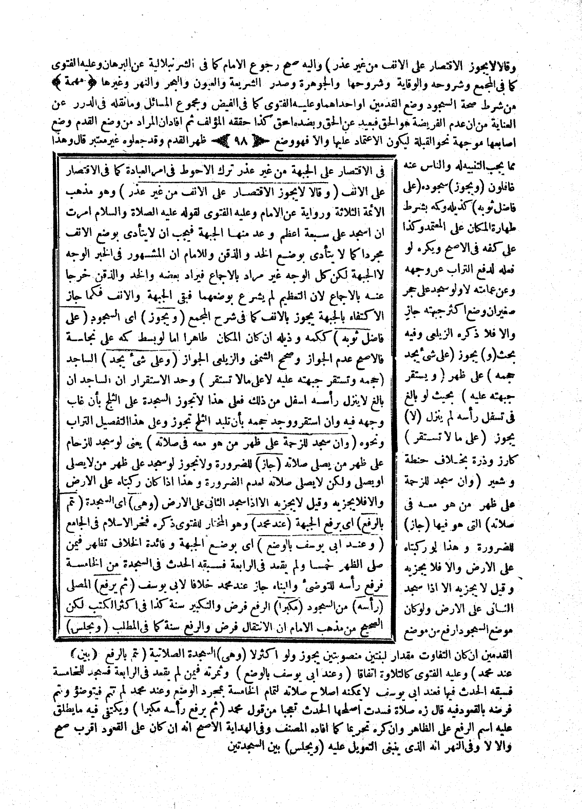 فِي الِاقْتِصَارِ عَلَى الْجَبْهَةِ مِنْ غَيْرِ عُذْرٍ تَرْكَ الْأَحْوَطِ فِي أَمْرِ الْعِبَادَةِ كَمَا فِي الِاقْتِصَارِ عَلَى الْأَنْفِ.