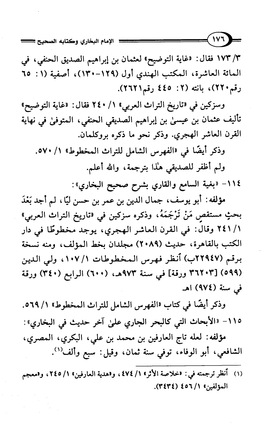 3/ 173 فقال: "غاية التوضيح" لعثمان بن إبراهيم الصديق الحنفي، في المائة العاشرة، المكتب الهندي أول (129 - 130)، أصفية (1: 65 رقم 220)، بانته (2: 445 رقم 2621).