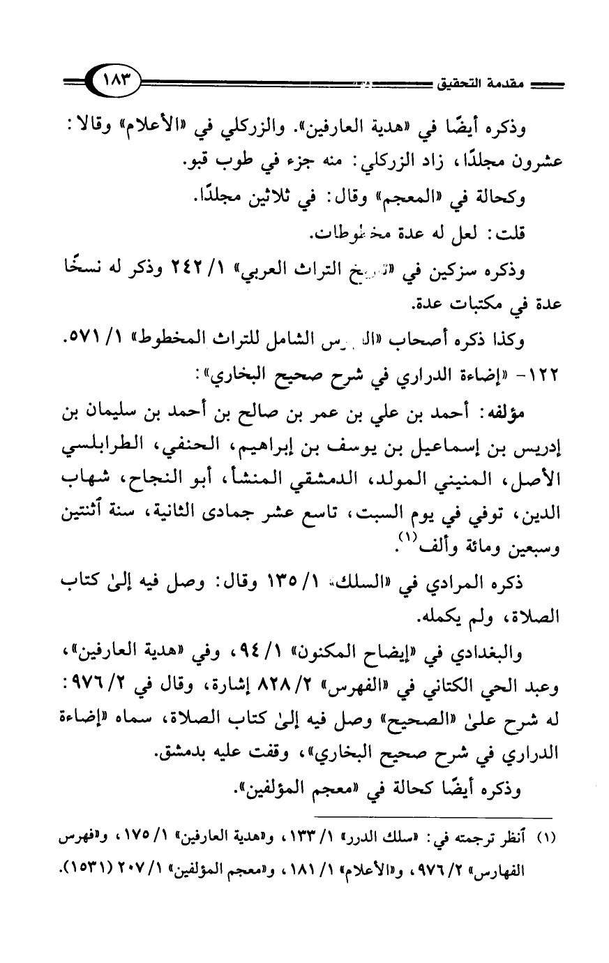 122 - "إضاءة الدراري في شرح صحيح البخاري":