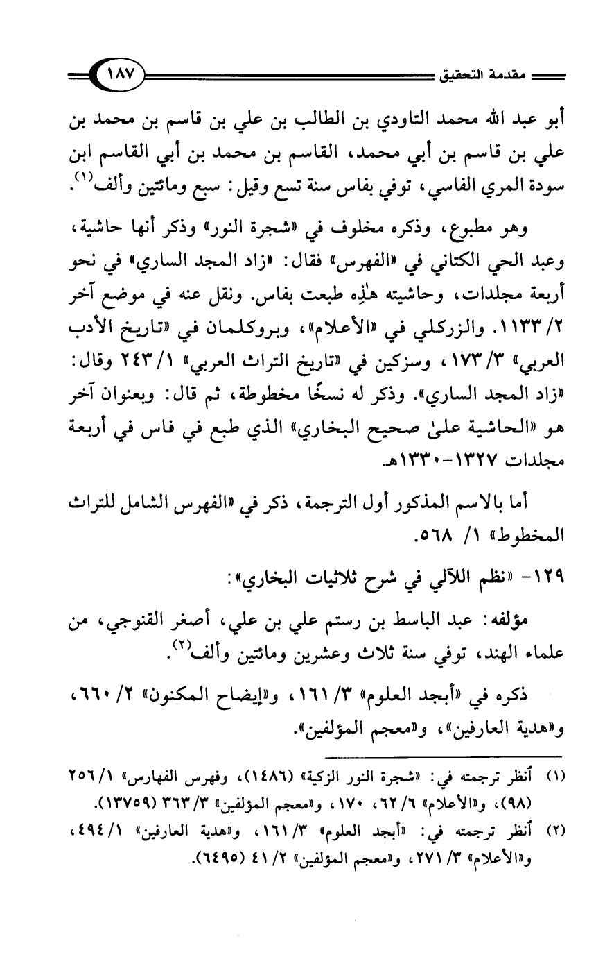 (¬1) انظر ترجمته في: "شجرة النور الزكية" (1486)، وفهرس الفهارس 1/ 256 (98)، و"الأعلام" 6/ 62، 170، و"معجم المؤلفين" 3/ 363 (13759).