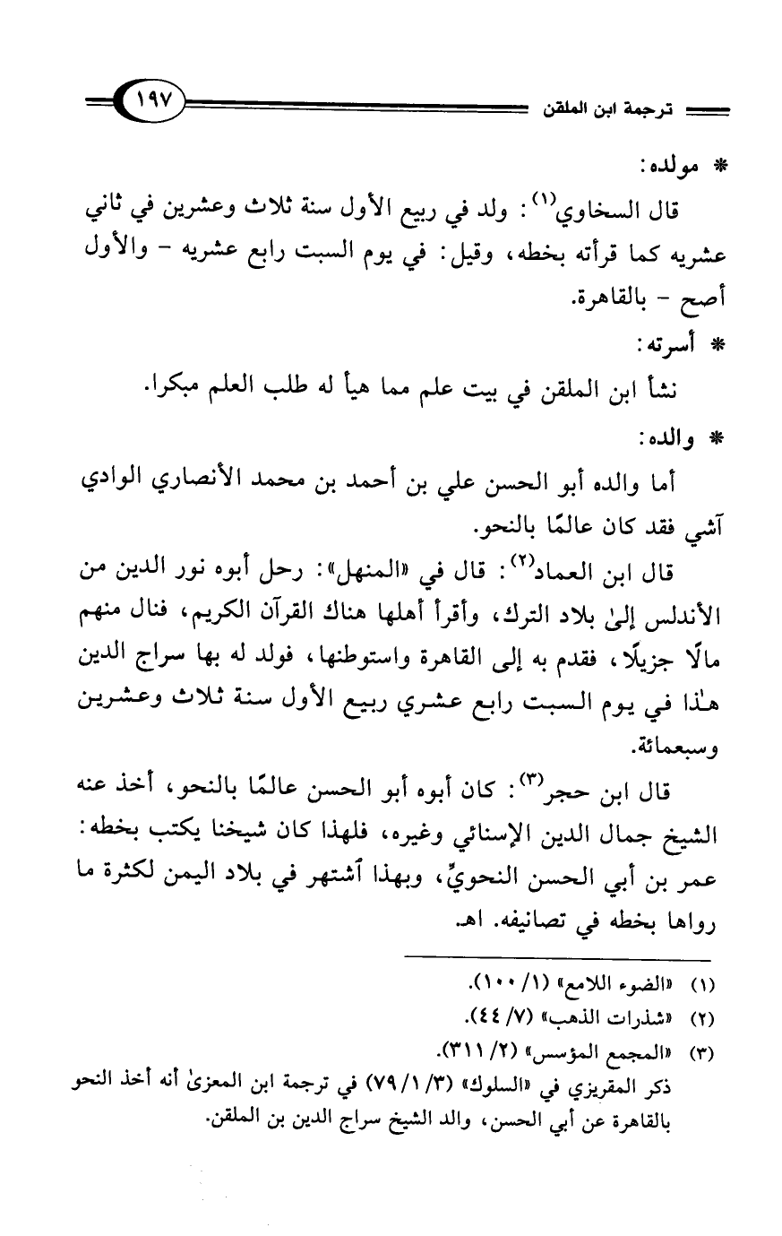 ذكر المقريزي في "السلوك" (3/ 1/ 79) في ترجمة ابن المعزى أنه أخذ النحو بالقاهرة عن أبي الحسن، والد الشيخ سراج الدين بن الملقن.