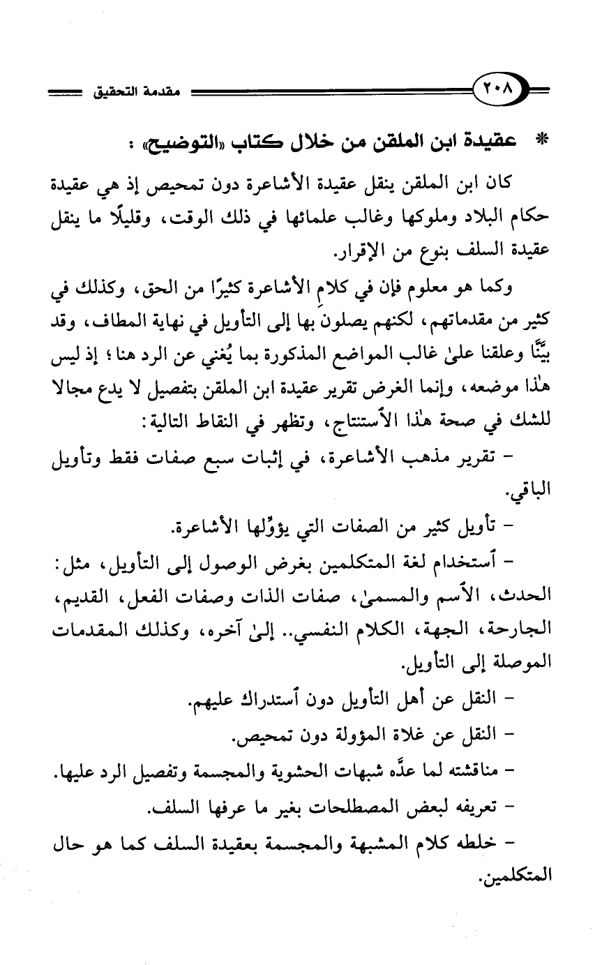 وكما هو معلوم فإن في كلامِ الأشاعرة كثيرًا من الحق، وكذلك في كثير من مقدماتهم، لكنهم يصلون بها إلى التأويل في نهاية المطاف، وقد بيَّنَّا وعلقنا على غالب المواضع المذكورة بما يُغني عن الرد هنا؛ إذ ليس هذا موضعه، وإنما الغرض تقرير عقيدة ابن الملقن بتفصيل لا يدع مجالا للشك في صحة هذا الاستنتاج، وتظهر في النقاط التالية: