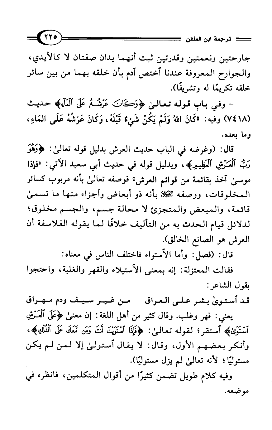 قال: (فصل: وأما الاستواء فاختلف الناس في معناه: فقالت المعتزلة: إنه بمعنى الاستيلاء والقهر والغلبة، واحتجوا بقول الشاعر: