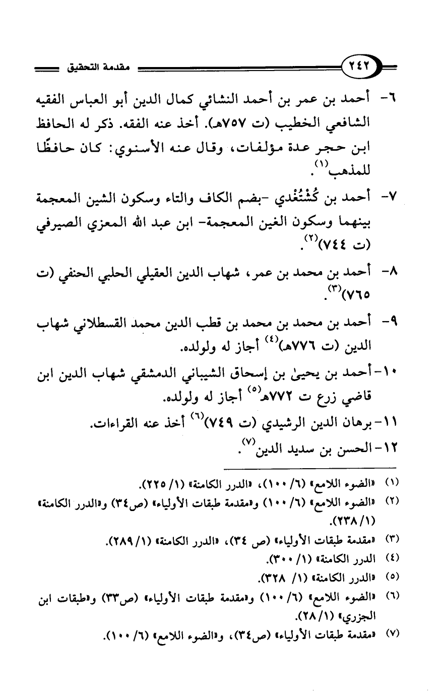 (¬6) "الضوء اللامع" (6/ 100) و"مقدمة طبقات الأولياء" (ص 33) و"طبقات ابن الجزري" (1/ 28).