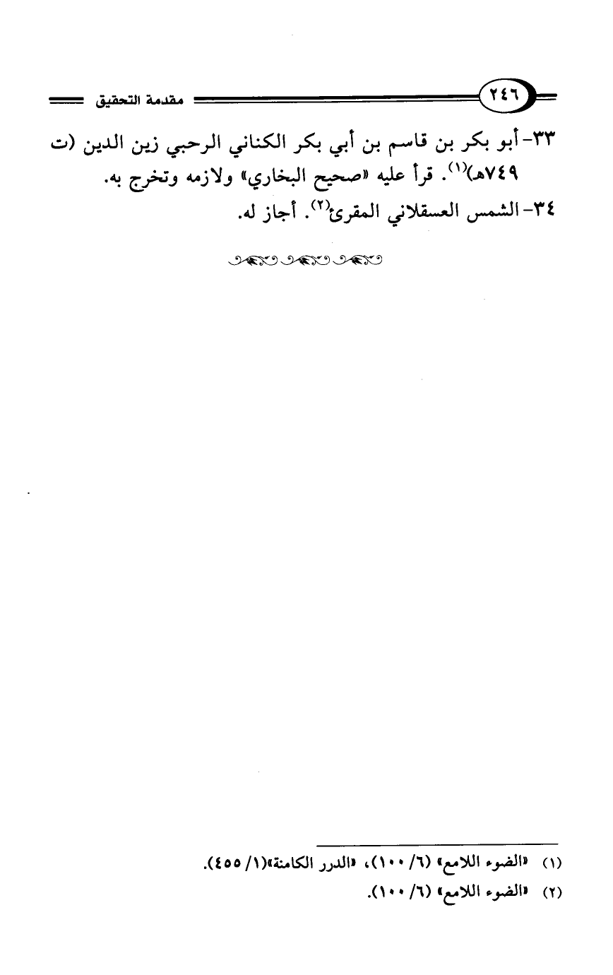 33 - أبو بكر بن قاسم بن أبي بكر الكناني الرحبي زين الدين (ت 749 هـ) (¬1). قرأ عليه "صحيح البخاري" ولازمه وتخرج به.