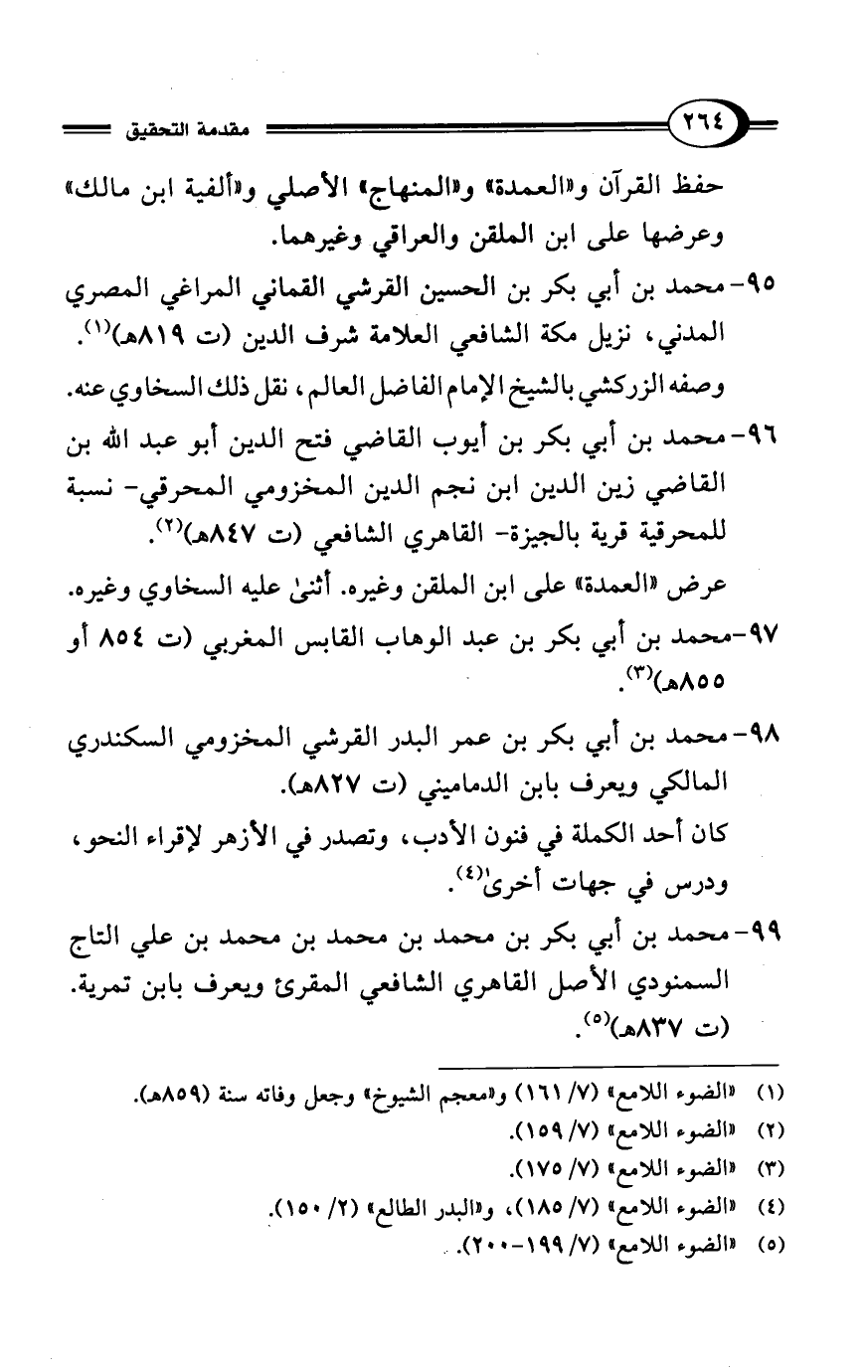 96 - محمد بن أبي بكر بن أيوب القاضي فتح الدين أبو عبد الله بن القاضي زين الدين ابن نجم الدين المخزومي المحرقي -نسبة للمحرقية قرية بالجيزة- القاهري الشافعي (ت 847 هـ) (¬2).