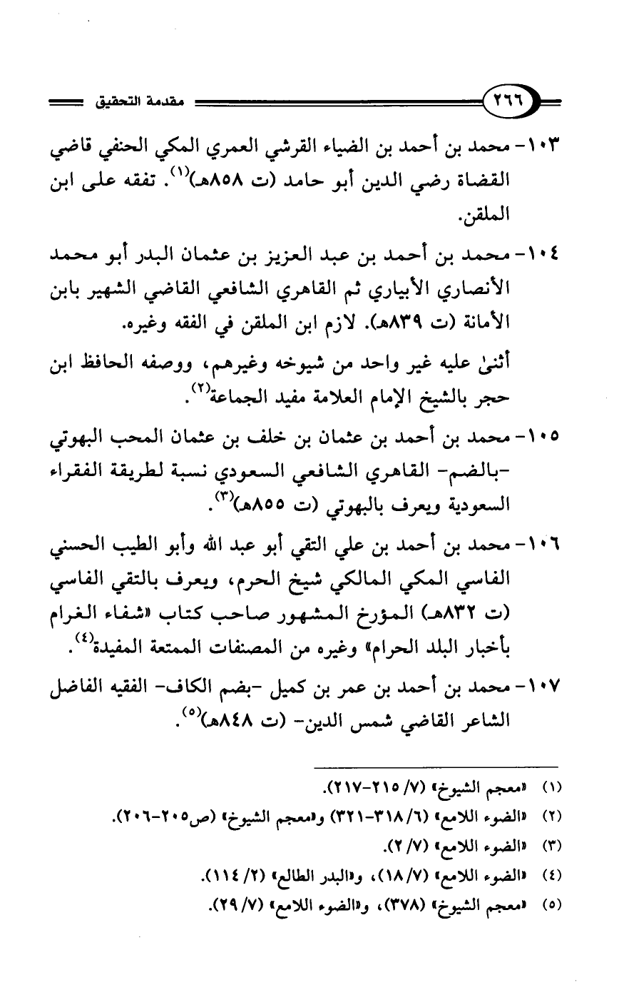 105 - محمد بن أحمد بن عثمان بن خلف بن عثمان المحب البهوتي -بالضم- القاهري الشافعي السعودي نسبة لطريقة الفقراء السعودية ويعرف بالبهوتي (ت 855 هـ) (¬3).