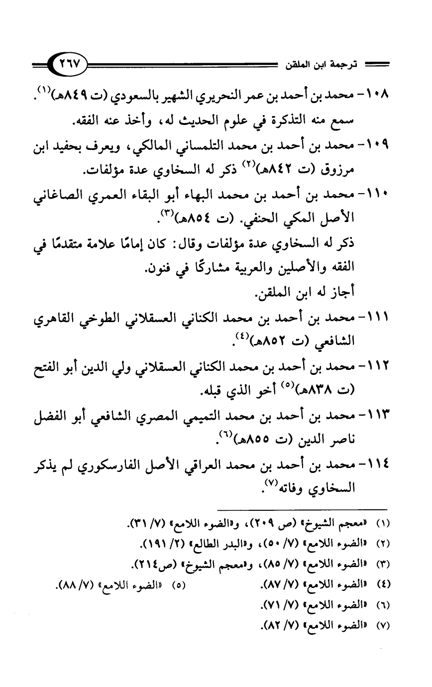 114 - محمد بن أحمد بن محمد العراقي الأصل الفارسكوري لم يذكر السخاوي وفاته (¬7).