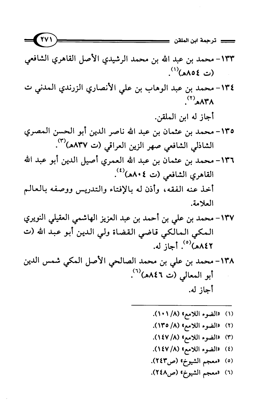 135 - محمد بن عثمان بن عبد الله ناصر الدين أبو الحسن المصري الشاذلي الشافعي صهر الزين العراقي (ت 837 هـ) (¬3).