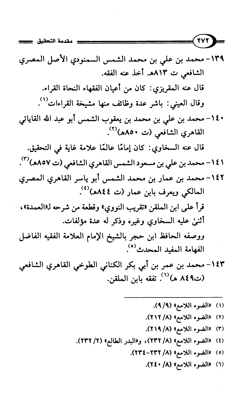 139 - محمد بن علي بن محمد الشمس السمنودي الأصل المصري الشافعي ت 813 هـ. أخذ عنه الفقه.