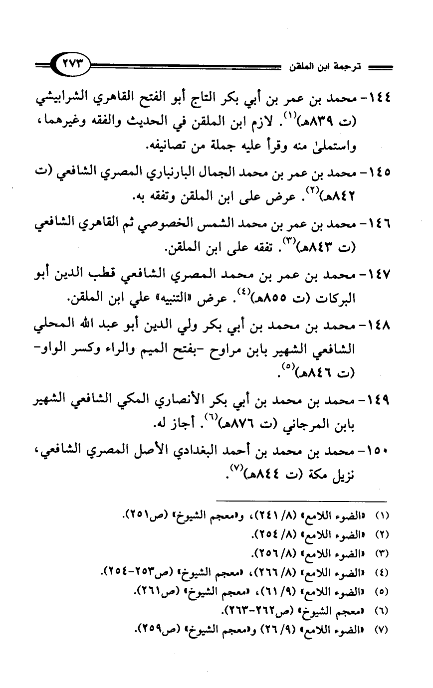 146 - محمد بن عمر بن محمد الشمس الخصوصي ثم القاهري الشافعي (ت 843 هـ) (¬3). تفقه على ابن الملقن.