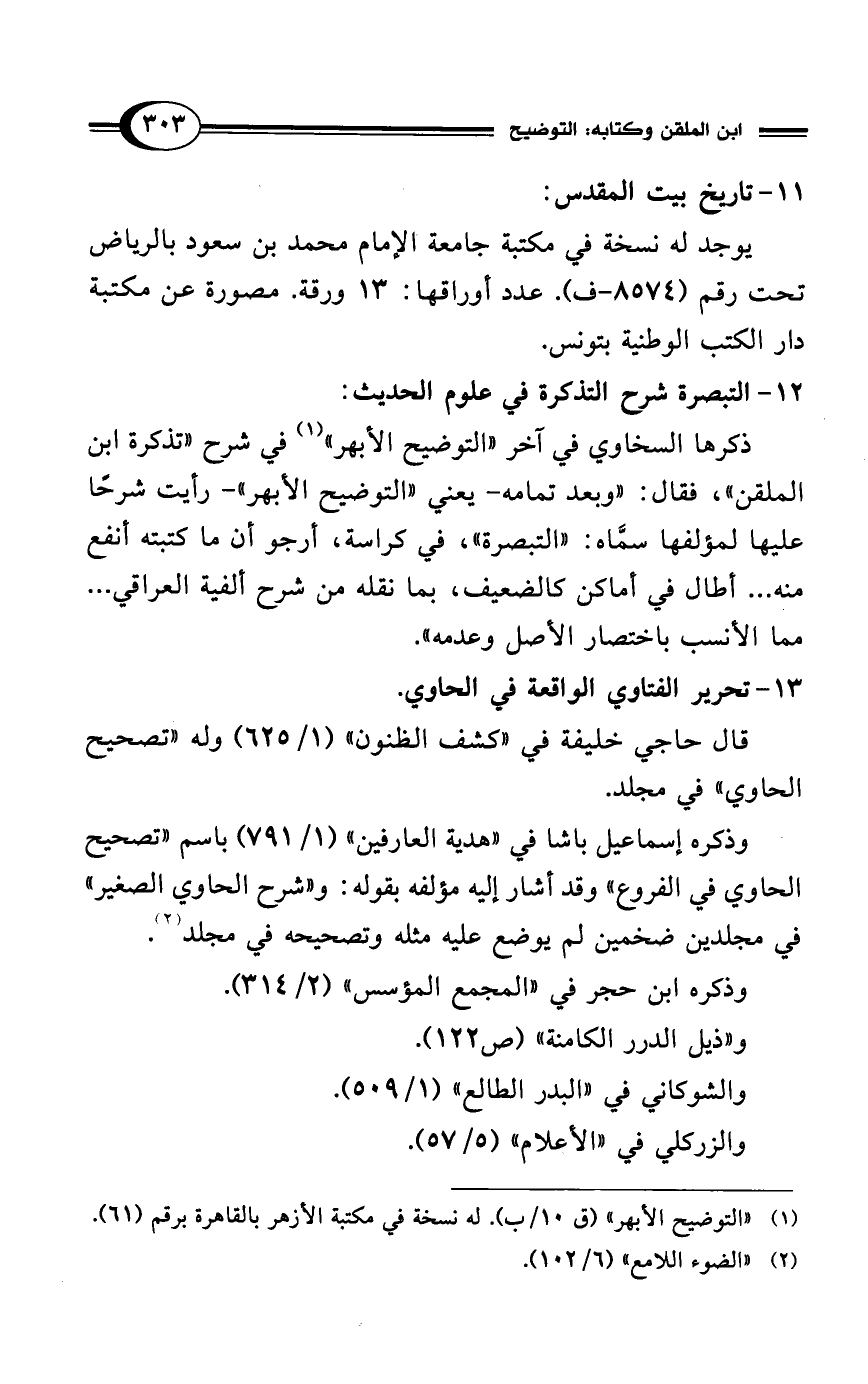 (¬1) "التوضيح الأبهر" (ق 10/ ب). له نسخة في مكتبة الأزهر بالقاهرة برقم (61).