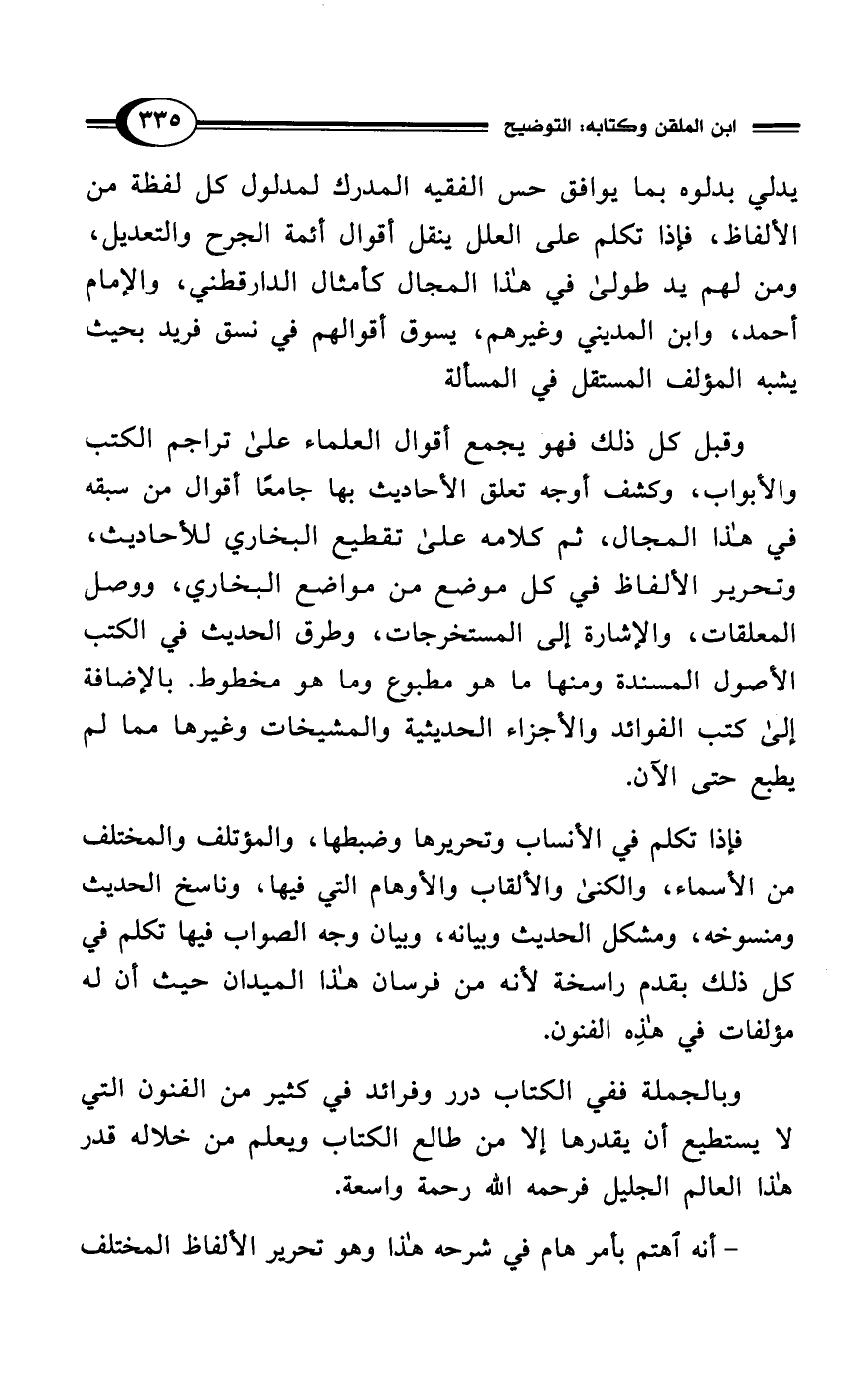 فإذا تكلم في الأنساب وتحريرها وضبطها، والمؤتلف والمختلف من الأسماء، والكنى والألقاب والأوهام التي فيها، وناسخ الحديث ومنسوخه، ومشكل الحديث وبيانه، وبيان وجه الصواب فيها تكلم في كل ذلك بقدم راسخة لأنه من فرسان هذا الميدان حيث أن له مؤلفات في هذِه الفنون.