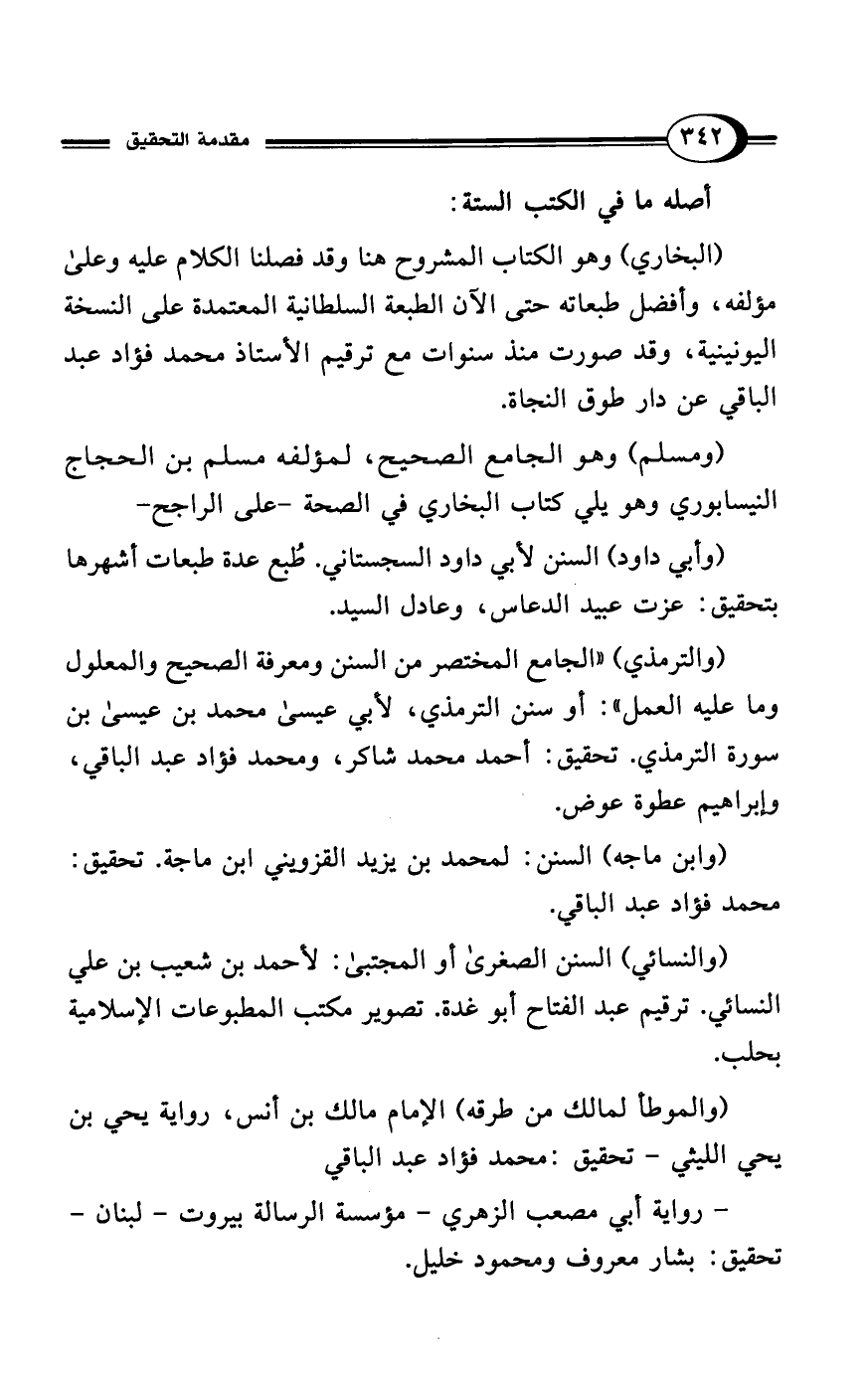 (وأبي داود) السنن لأبي داود السجستاني. طُبع عدة طبعات أشهرها بتحقيق: عزت عبيد الدعاس، وعادل السيد.