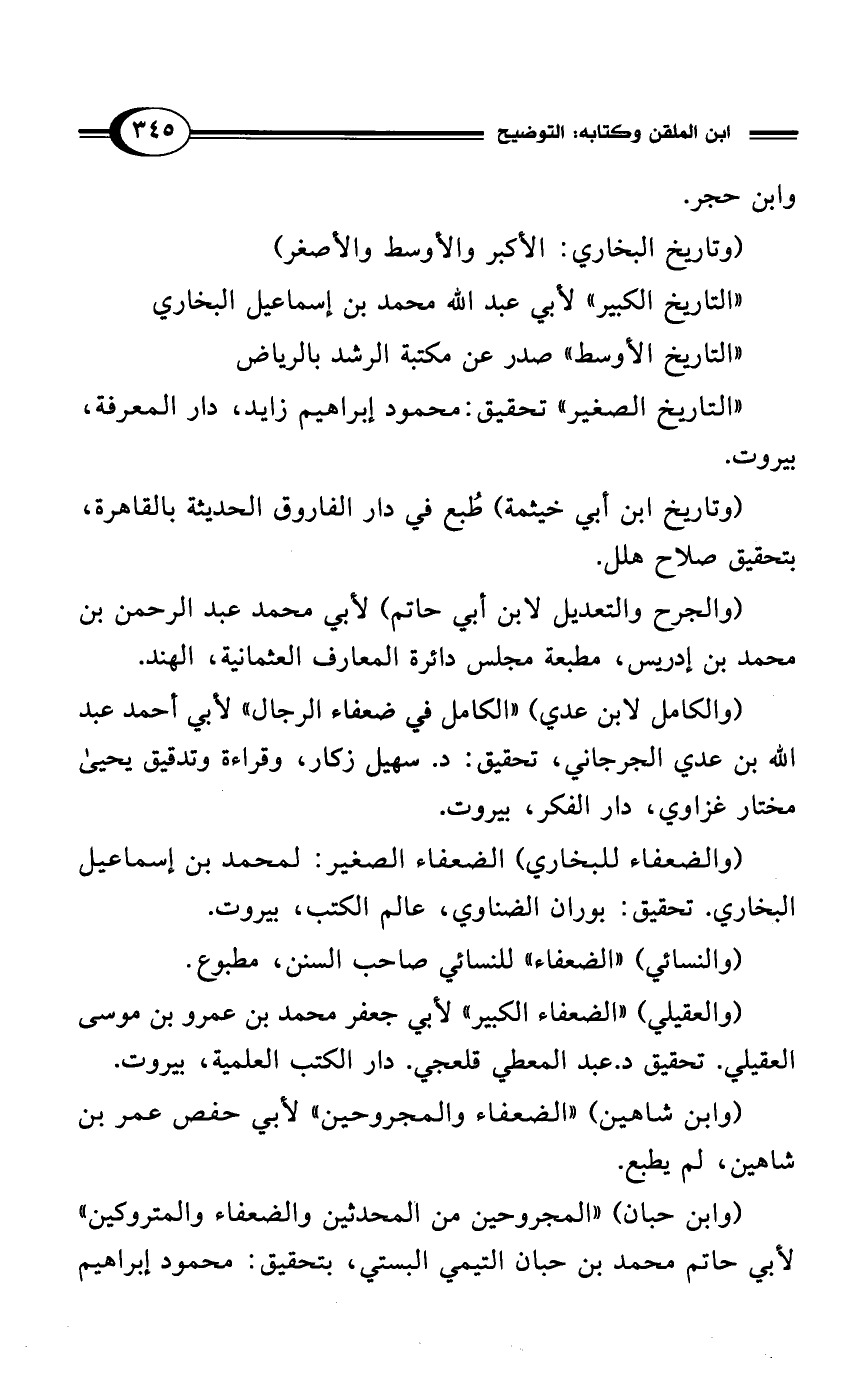 (وابن حبان) "المجروحين من المحدثين والضعفاء والمتروكين" لأبي حاتم محمد بن حبان التيمي البستي، بتحقيق: محمود إبراهيم