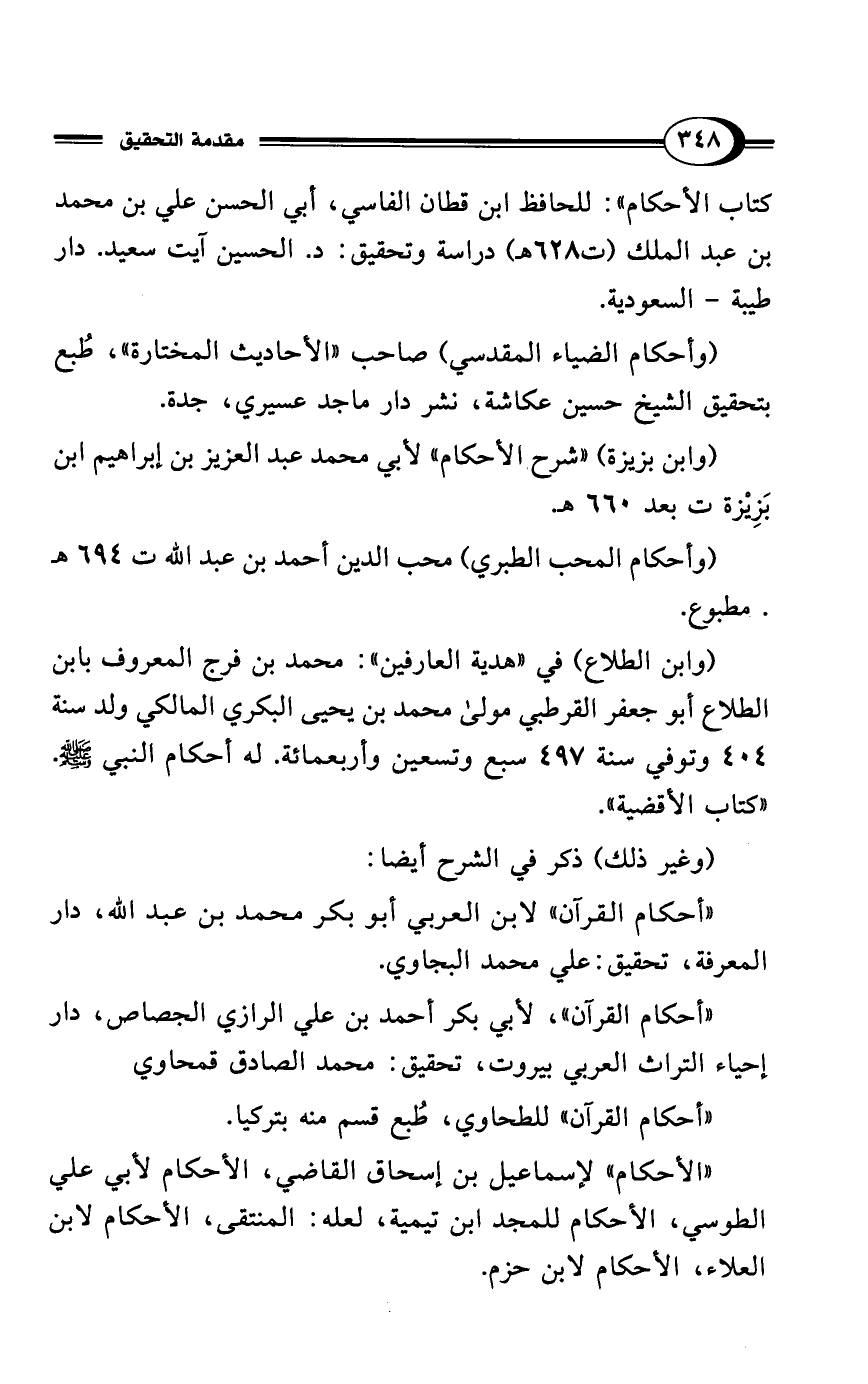 كتاب الأحكام": للحافظ ابن قطان الفاسي، أبي الحسن علي بن محمد بن عبد الملك (ت 628 هـ) دراسة وتحقيق: د. الحسين آيت سعيد. دار طيبة- السعودية.