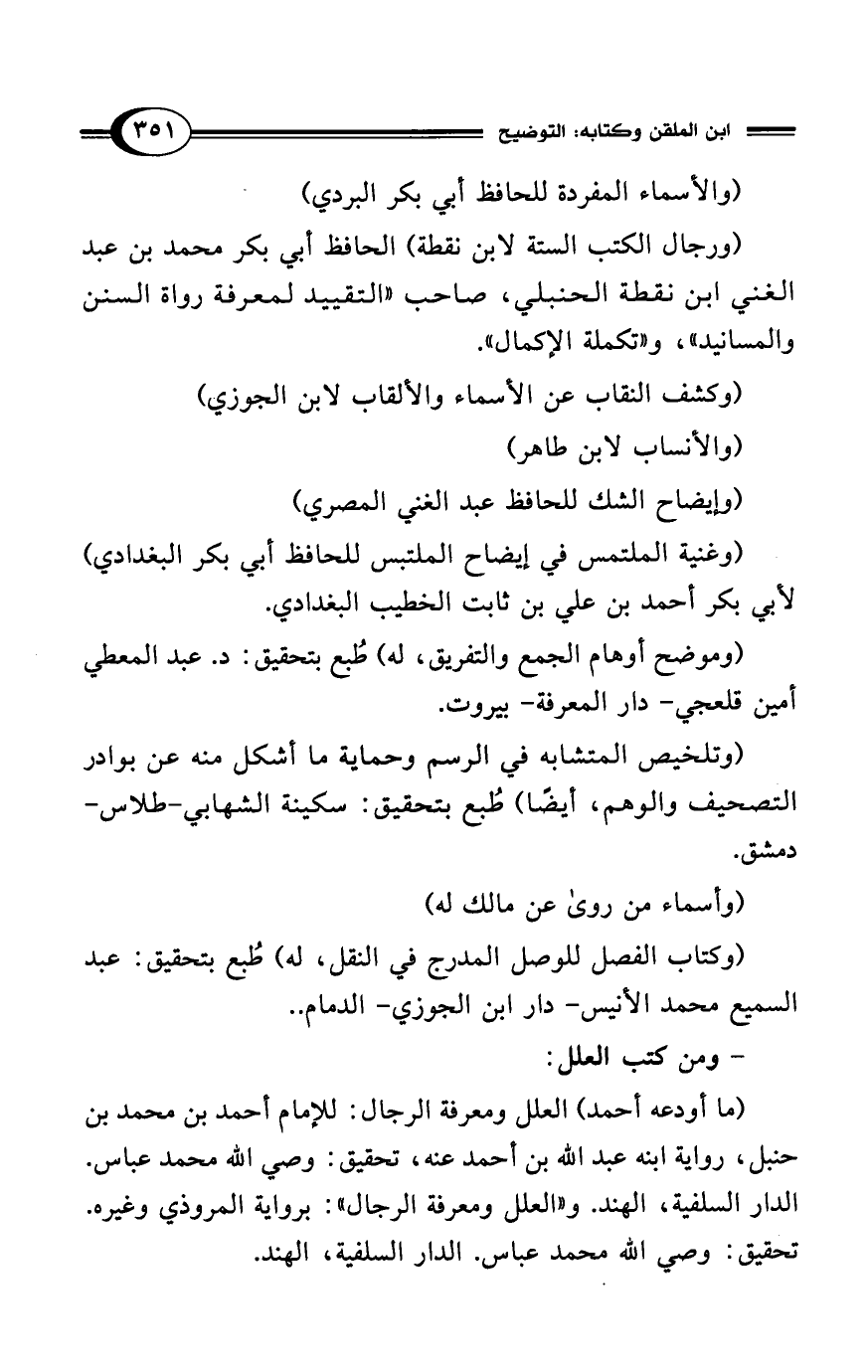 (وإيضاح الشك للحافظ عبد الغني المصري)