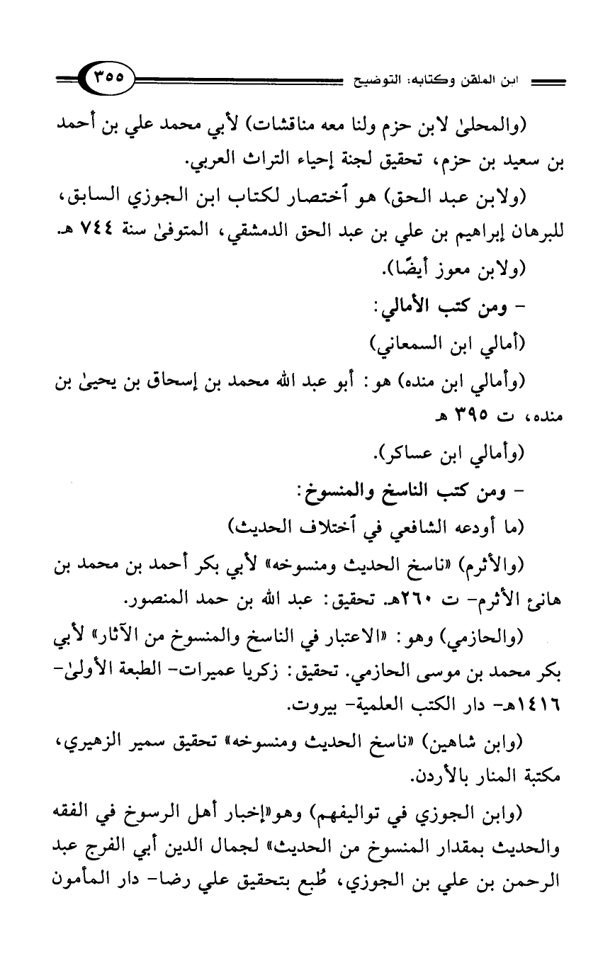 (وابن الجوزي في تواليفهم) وهو "إخبار أهل الرسوخ في الفقه والحديث بمقدار المنسوخ من الحديث" لجمال الدين أبي الفرج عبد الرحمن بن علي بن الجوزي، طُبع بتحقيق علي رضا- دار المأمون