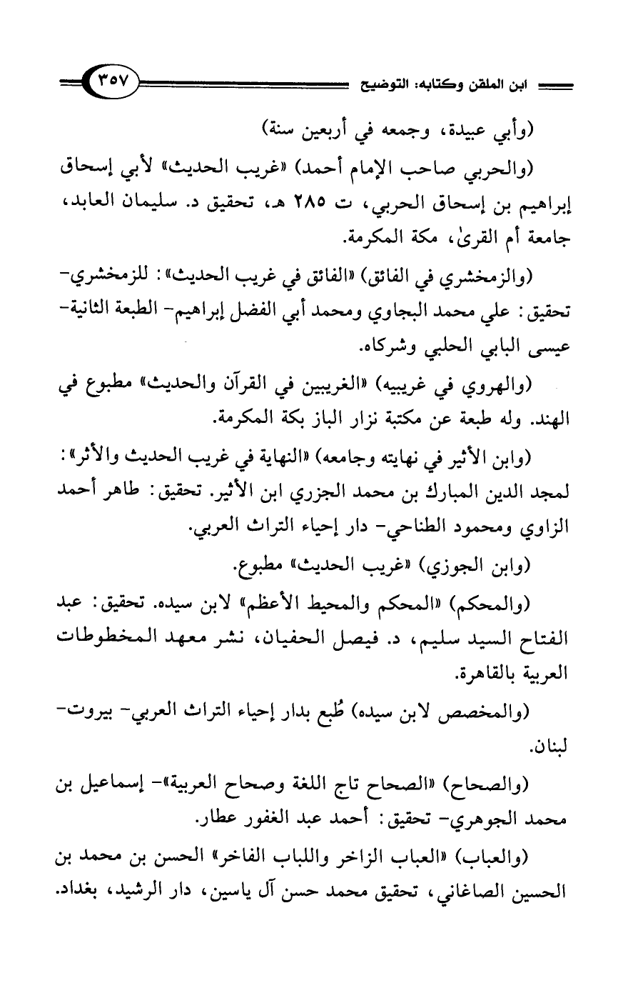 (والحربي صاحب الإمام أحمد) "غريب الحديث" لأبي إسحاق إبراهيم بن إسحاق الحربي، ت 285 هـ، تحقيق د. سليمان العابد، جامعة أم القرى، مكة المكرمة.