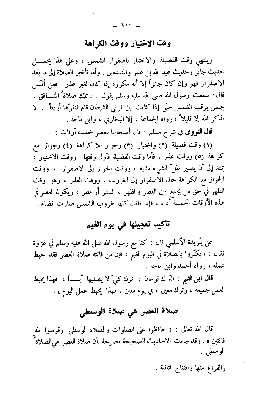 عن بريدة الاسلمي قال: كنا مع رسول الله صلى الله عليه وسلم في غزوة فقال: (بكروا بالصلاة في اليوم الغيم، فإن من فاتته صلاة العصر فقد حبط عمله) رواه أحمد وابن ماجه.