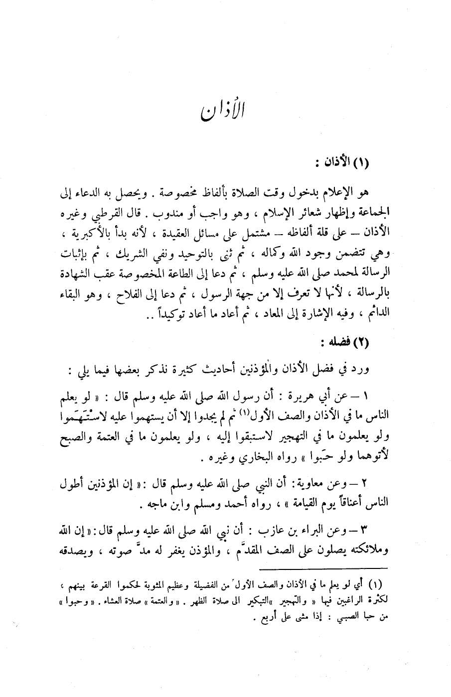 (1) الاذان: هو الاعلام بدخول وقت الصلاة بألفاظ مخصوصة.