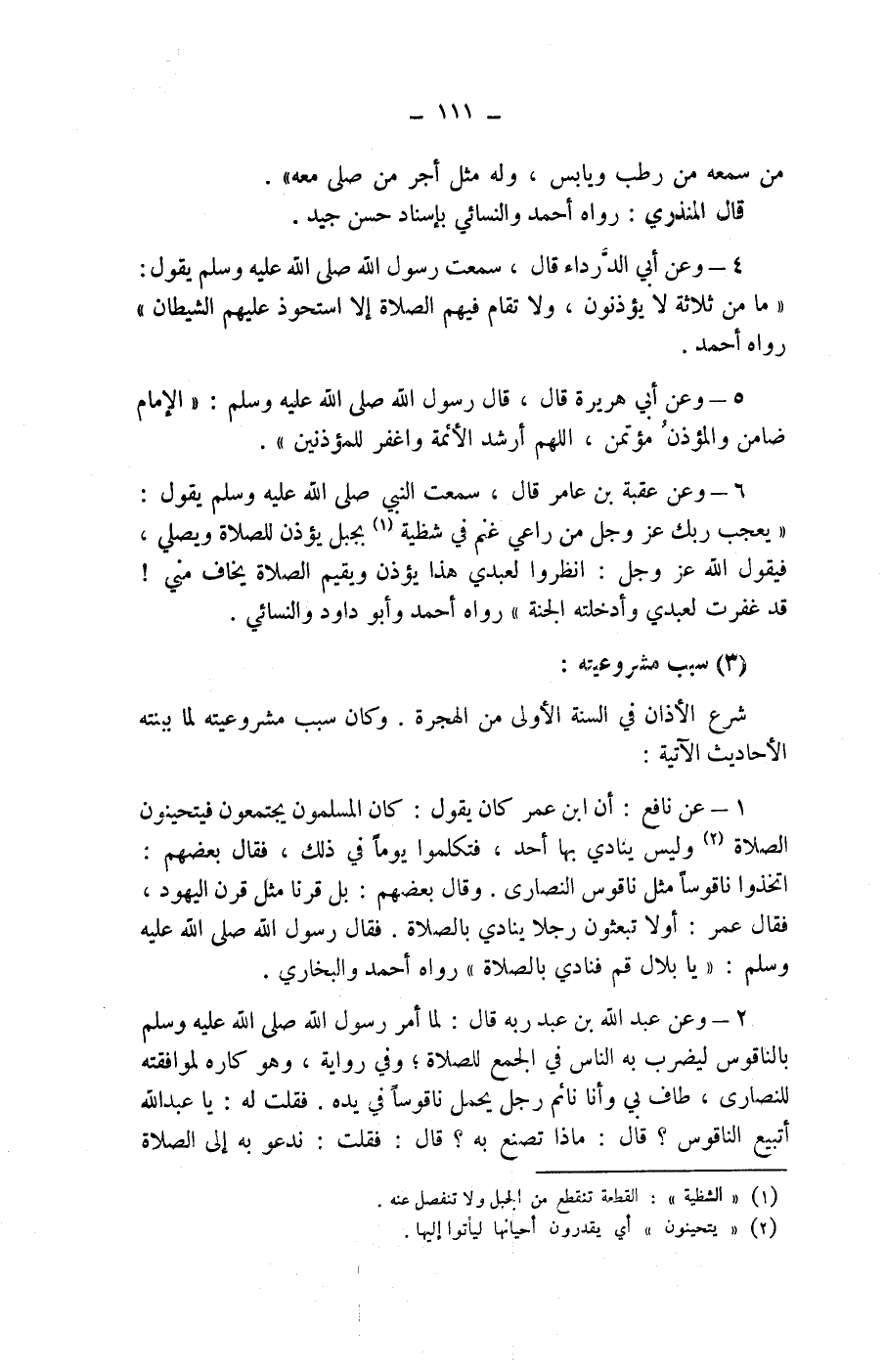 6 - وعن عقبة بن عامر قال، سمعت النبي صلى الله عليه وسلم يقول: (يعجب ربك عز وجل من راعي غنم في شظية (1) بجبل يؤذن الصلاة ويصلي، فيقول الله عزوجل: انظروا لعبدي هذا يؤذن ويقيم الصلاة يخاف مني! قد غفرت لعبدي وأدخلته الجنة) رواه أحمد وأبو داود والنسائي.