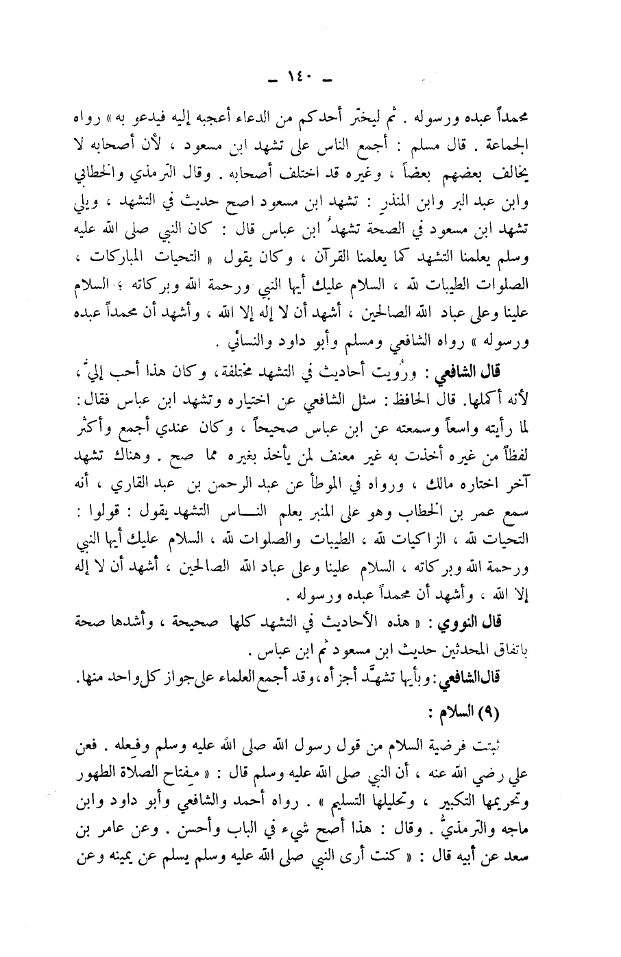 (9) السلام: ثبتت فرضية السلام من قول رسول الله صلى الله عليه وسلم وفعله.