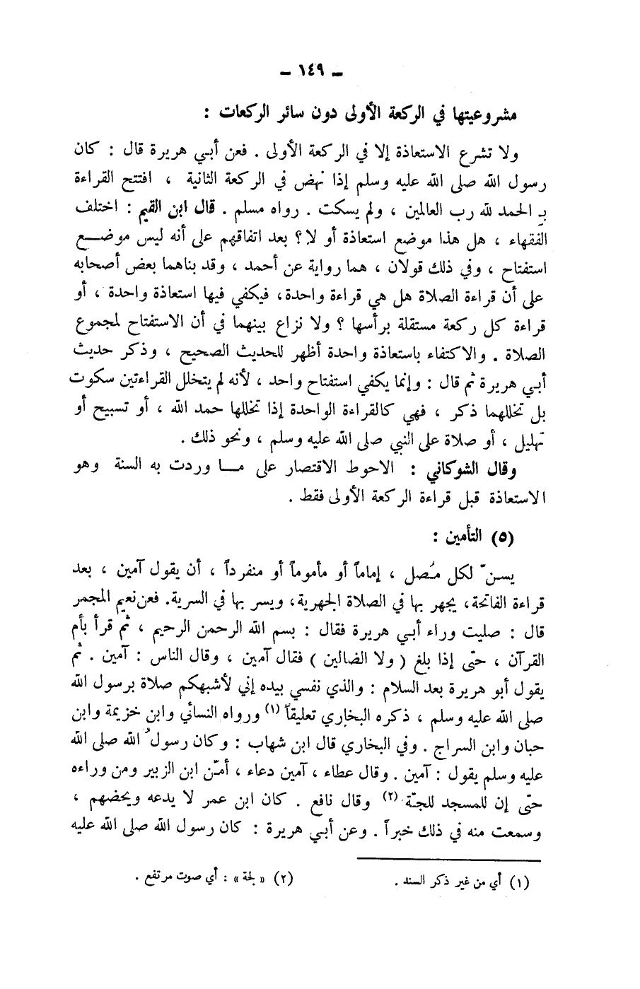 (5) التأمين: يسن لكل مصل، إماما أو مأموما أو منفردا، أن يقول آمين، بعد قراءة الفاتحة، يجهر بها في الصلاة الجهرية، ويسر بها في السرية.