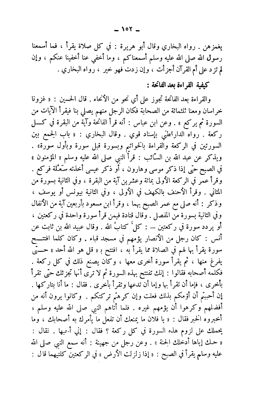 رواه البخاري وقال أبو هريرة: في كل صلاة يقرأ، فما أسمعنا رسول الله صلى الله عليه وسلم أسمعناكم، وما أخفي عنا أخفينا عنكم، وإن لم تزد على أم القرآن أجزأت، وإن زدت فهو خير، رواه البخاري.