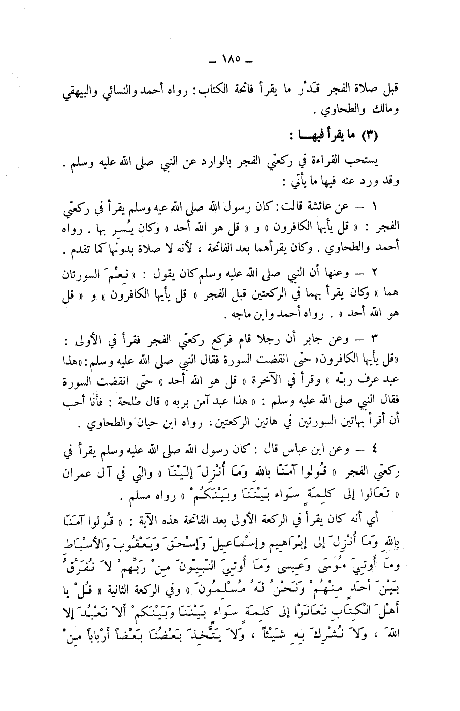 4 - وعن ابن عباس قال: كان رسول الله صلى الله عليه وسلم يقرأ فيركعتي الفجر (قولوا آمنا بالله وما أنزل إلينا) والتي في آل عمران (تعالوا إلى كلمة سواء بيننا وبينكم) رواه مسلم.