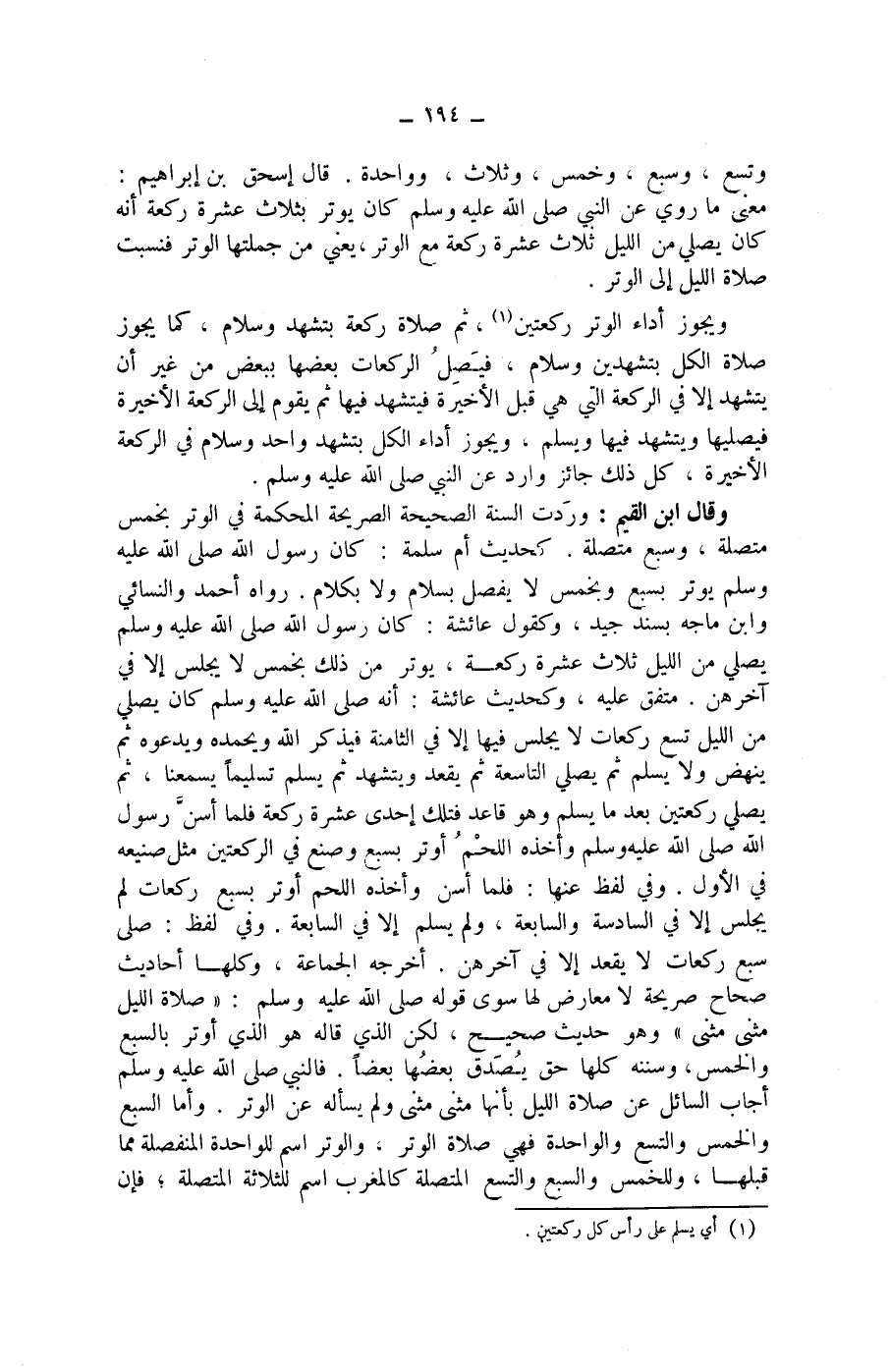 وقال ابن القيم: وردت السنة الصحيحة الصريحة المحكمة في الوتر بخمس متصلة، وسبع متصلة.