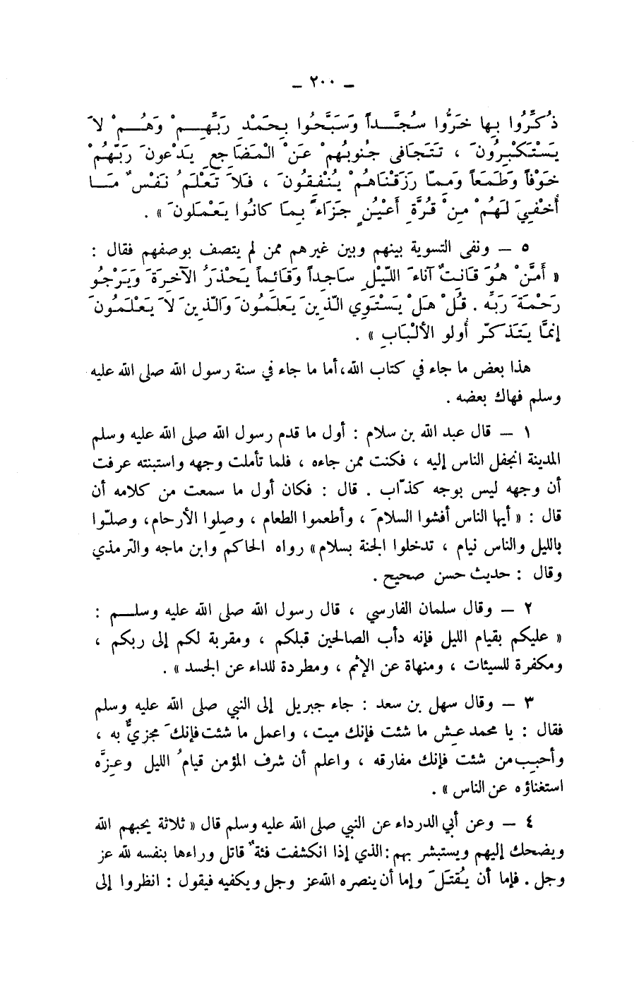 2 - وقال سلمان الفارسي، قال رسول الله صلى الله عليه وسلم: (عليكم بقيام الليل فإنه دأب الصالحين قبلكم، ومقربة لكن إلى ربكم، ومكفرة للسيئات، ومنهاة عن الاثم، ومطردة للداء عن الجسد) .