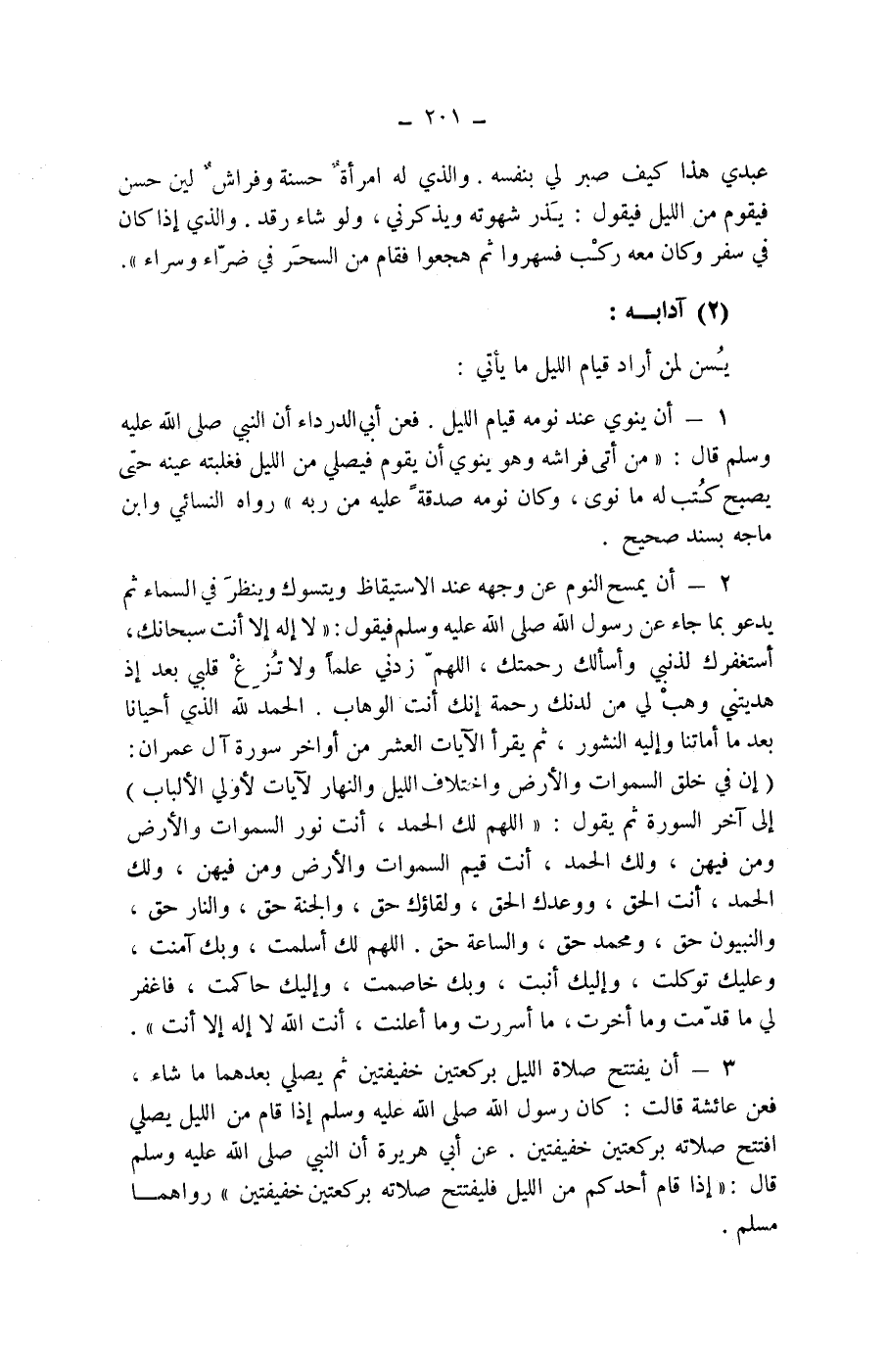 (2) آدابه: يسن لمن أراد قيام الليل ما يأتي: