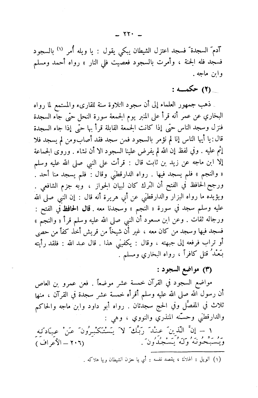 (3) مواضع السجود: مواضع السجود في القرآن خمسة عشر موضعا.