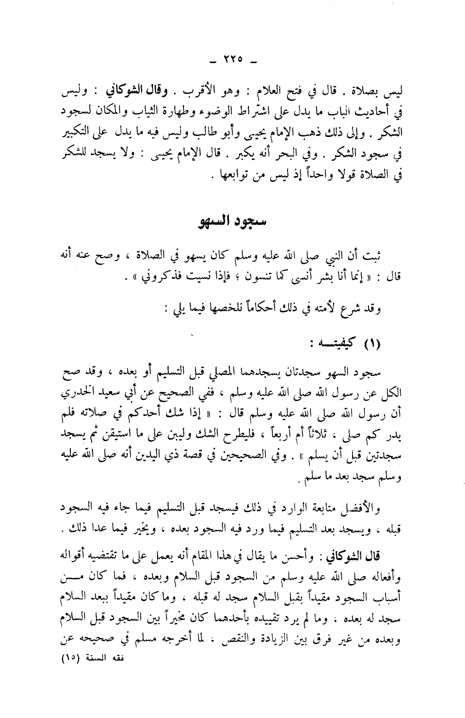 (1) كيفيته: سجود السهو سجدتان يسجدهما المصلي قبل التسليم أو بعده، وقد صح الكل عن رسول الله صلى الله عليه وسلم، ففي الصحيح عن أبي سعيد الخدري أن رسول الله صلى الله عليه وسلم قال: (إذا شك أحدكم في صلاته فلم يدركم صلى، ثلاثا أم أربعا، فليطرح الشك وليبن على ما استيقن ثم يسجد سجدتين قبل أن يسلم) .