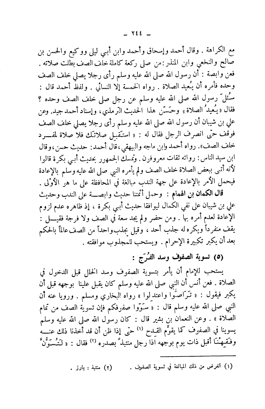 (1) الغرض من ذلك المبالغة في تسوية الصفوف.