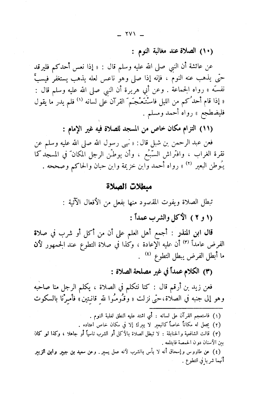 (3) الكلام عمدا في غير مصلحة الصلاة: فعن زيد بن أرقم قال: كنا نتكلم في الصلاة، يكلم الرجل منا صاحبه وهو إلى جنبه في الصلاة، حتى نزلت (وقوموا لله قانتين) فأمرنا بالسكوت