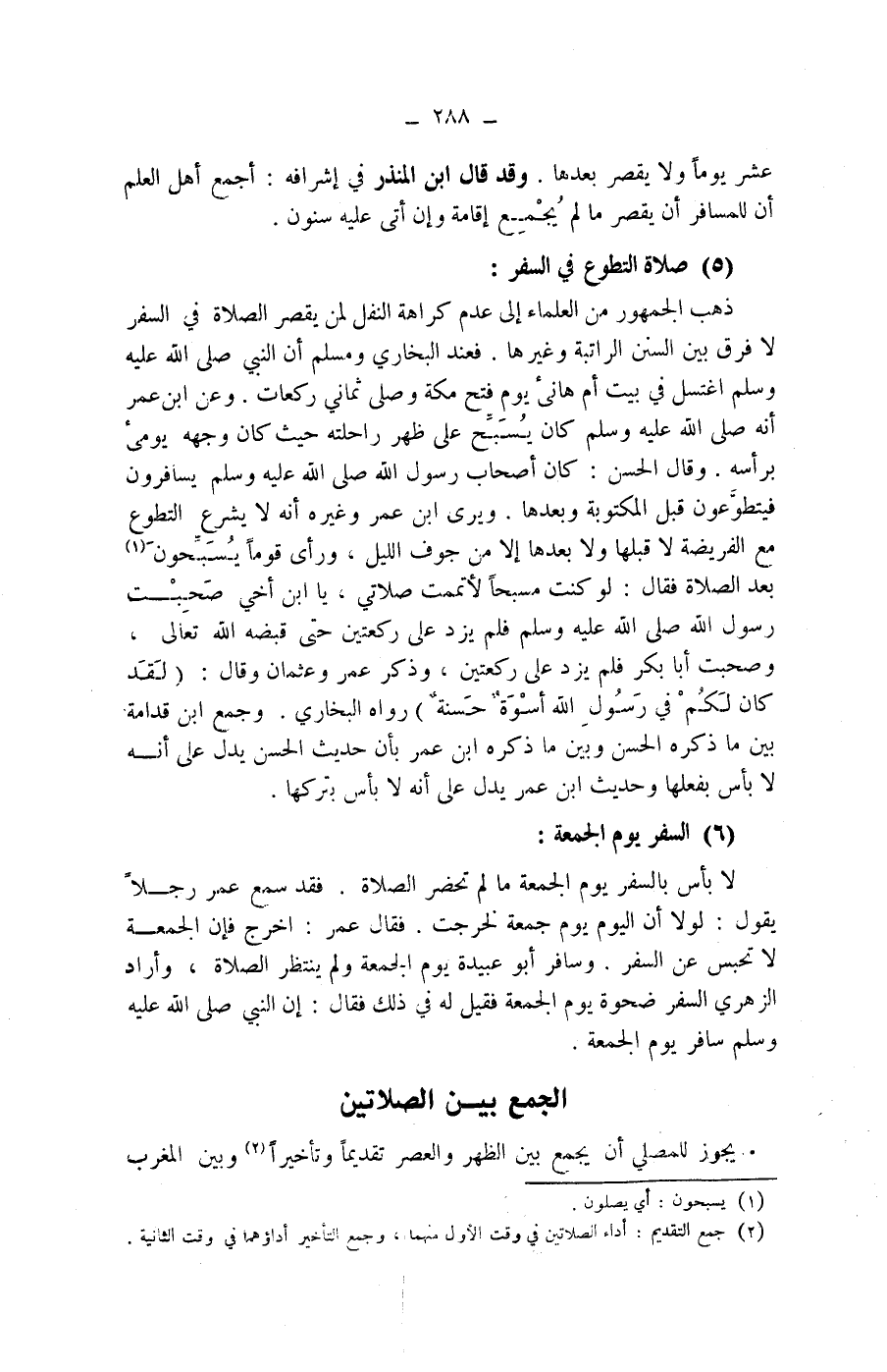 (5) صلاة التطوع في السفر: ذهب الجمهور من العلماء إلى عدم كراهة النفل لمن يقصر الصلاة في السفر لا فرق بين السنن الراتبة وغيرها.