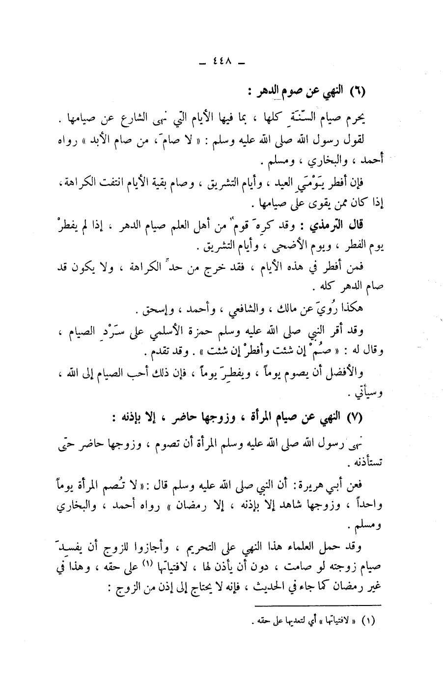 (6) النهي عن صوم الدهر: يحرم صيام السنة كلها، بما فيها الايام التي نهى الشارع عن صيامها.