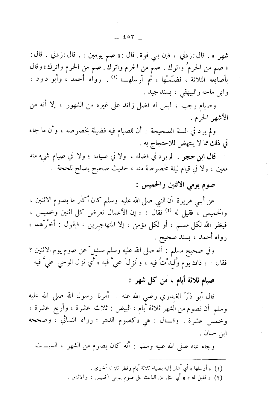 عن أبي هريرة أن النبي صلى الله عليه وسلم كان أكثر ما يصوم الاثنين، والخميس، فقيل له (2) فقال: " إن الاعمال تعرض كل اثنين وخميس، فيغفر الله لكل مسلم، أو لكل مؤمن، إلا المتهاجرين، فيقول: أخرهما " رواه أحمد، بسند صحيح.