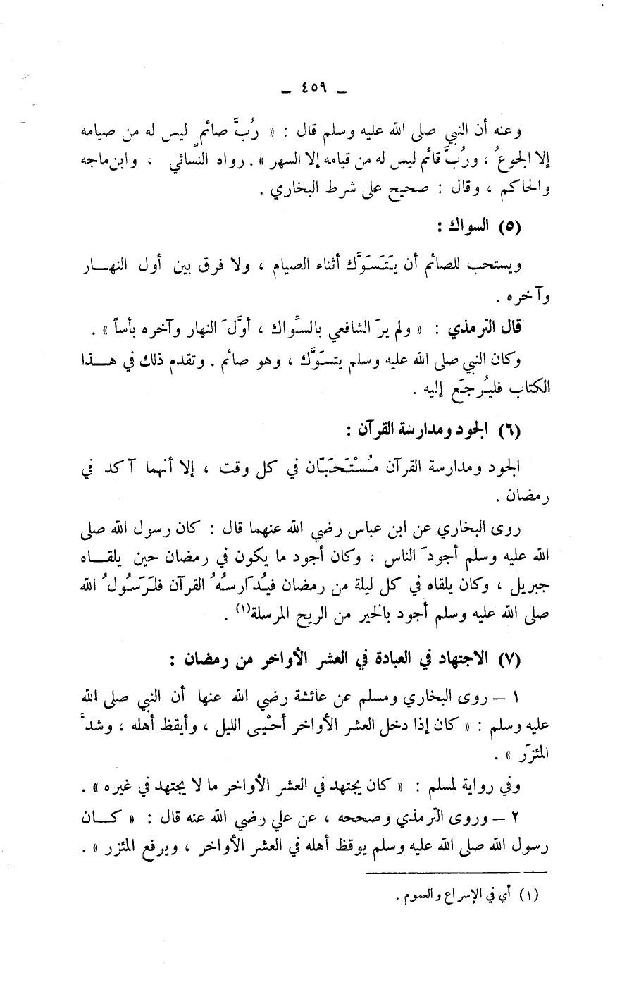 (6) الجود ومدارسة القرآن: الجود ومدارسة القرآن مستحبان في كل وقت، إلا أنهما آكد في رمضان.