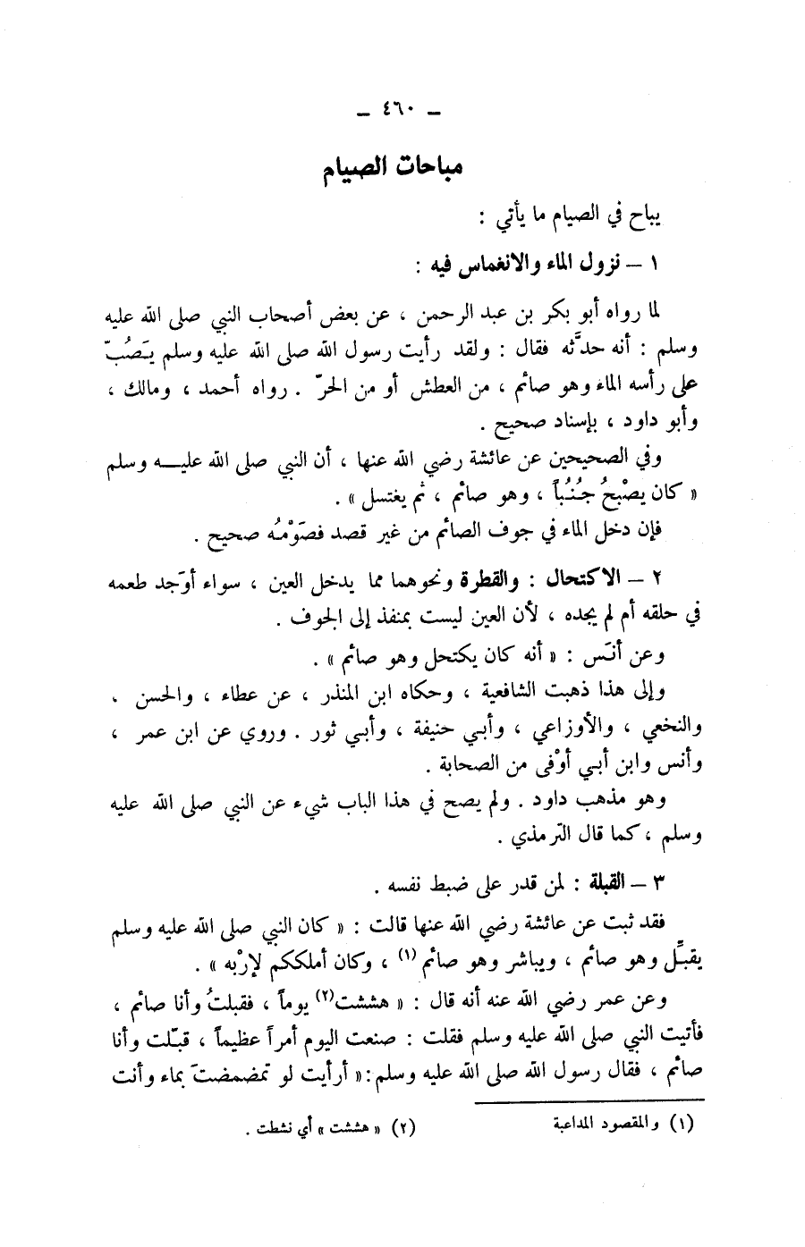 وعن عمر رضي الله عنه أنه قال: " هششت (2) يوما، فقبلت وأنا صائم، فأتيت النبي صلى الله عليه وسلم فقلت: صنعت اليوم أمرا عظيما، قبلت وأنا صائم، فقال رسول الله عليه وسلم: " أرأيت لو تمضمضت بماء وأنت