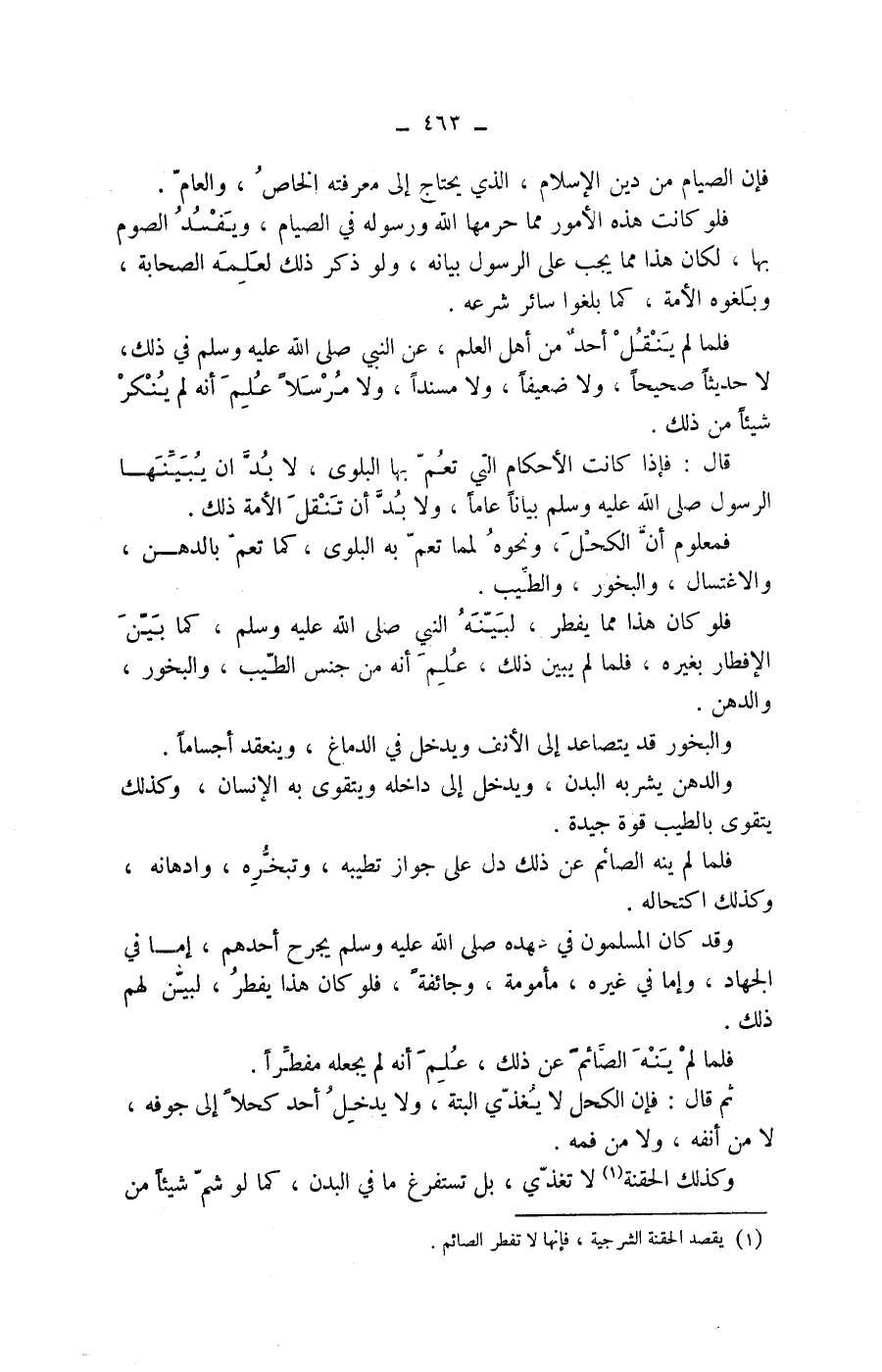 (1) يقصد الحقنة الشرجية، فإنها لا تفطر الصائم.